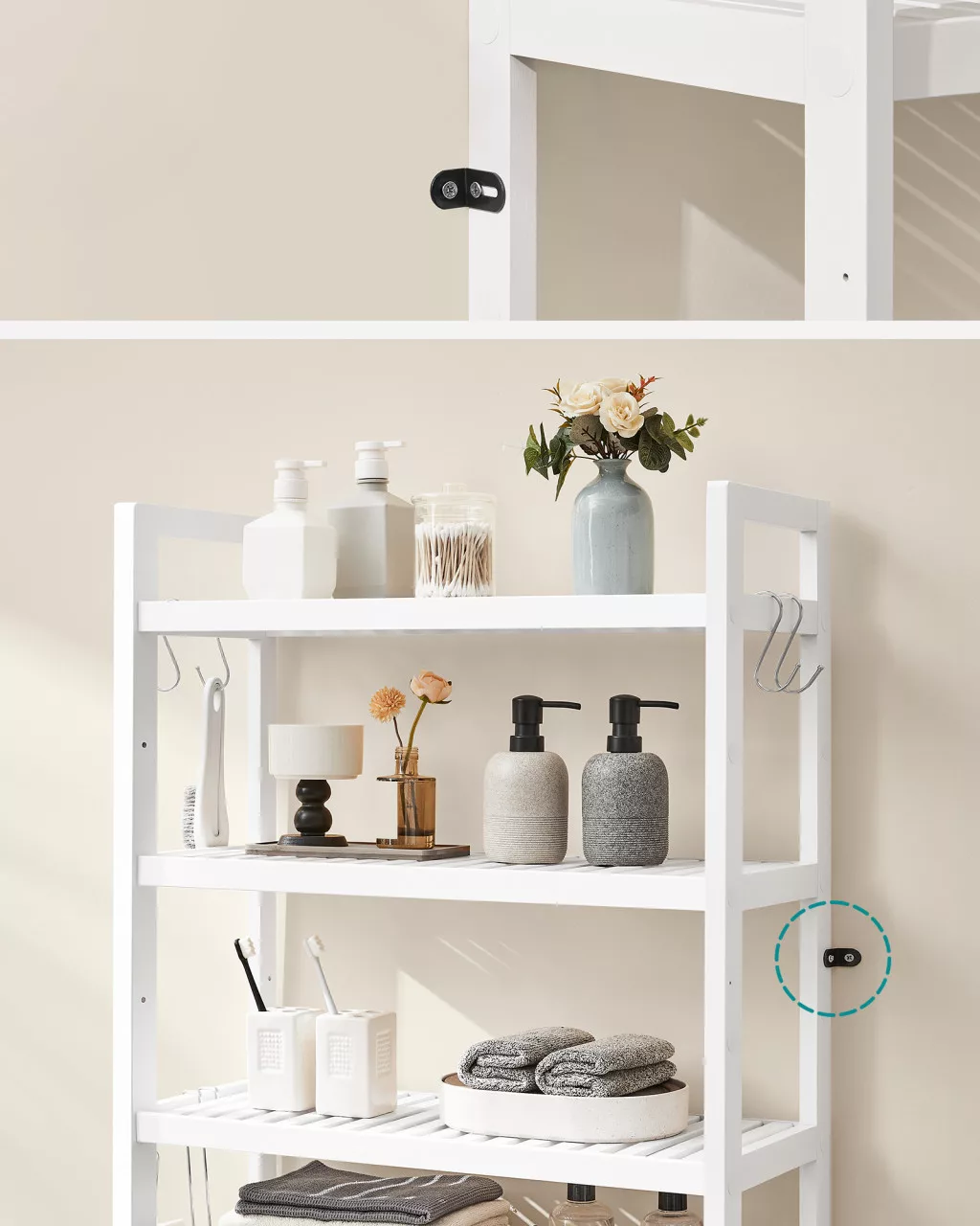• 4 szintes kialakítás: Bőséges tárolóhely különböző fürdőszobai kellékek számára