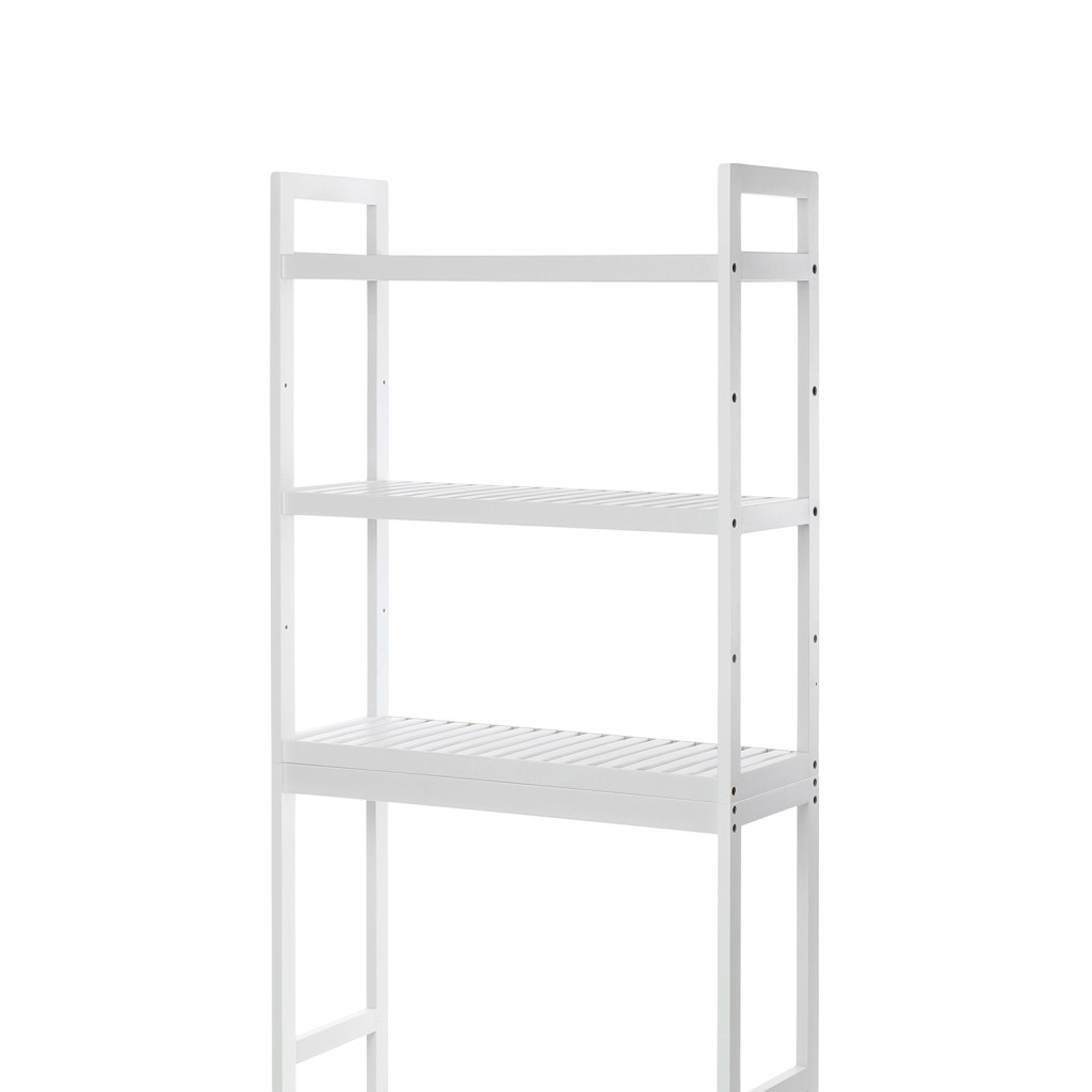 Ez a modern, 3-szintes fürdőszobai állvány tökéletes megoldást nyújt a korlátozott fürdőszobai tér maximális kihasználására. A fehér bambuszból készült szerkezet nem csak praktikus tárolóhely, de stílusos kiegészítője is a fürdőszobának. Az állítható polcmagasságnak köszönhetően személyre szabhatja a tárolóteret igényei szerint.