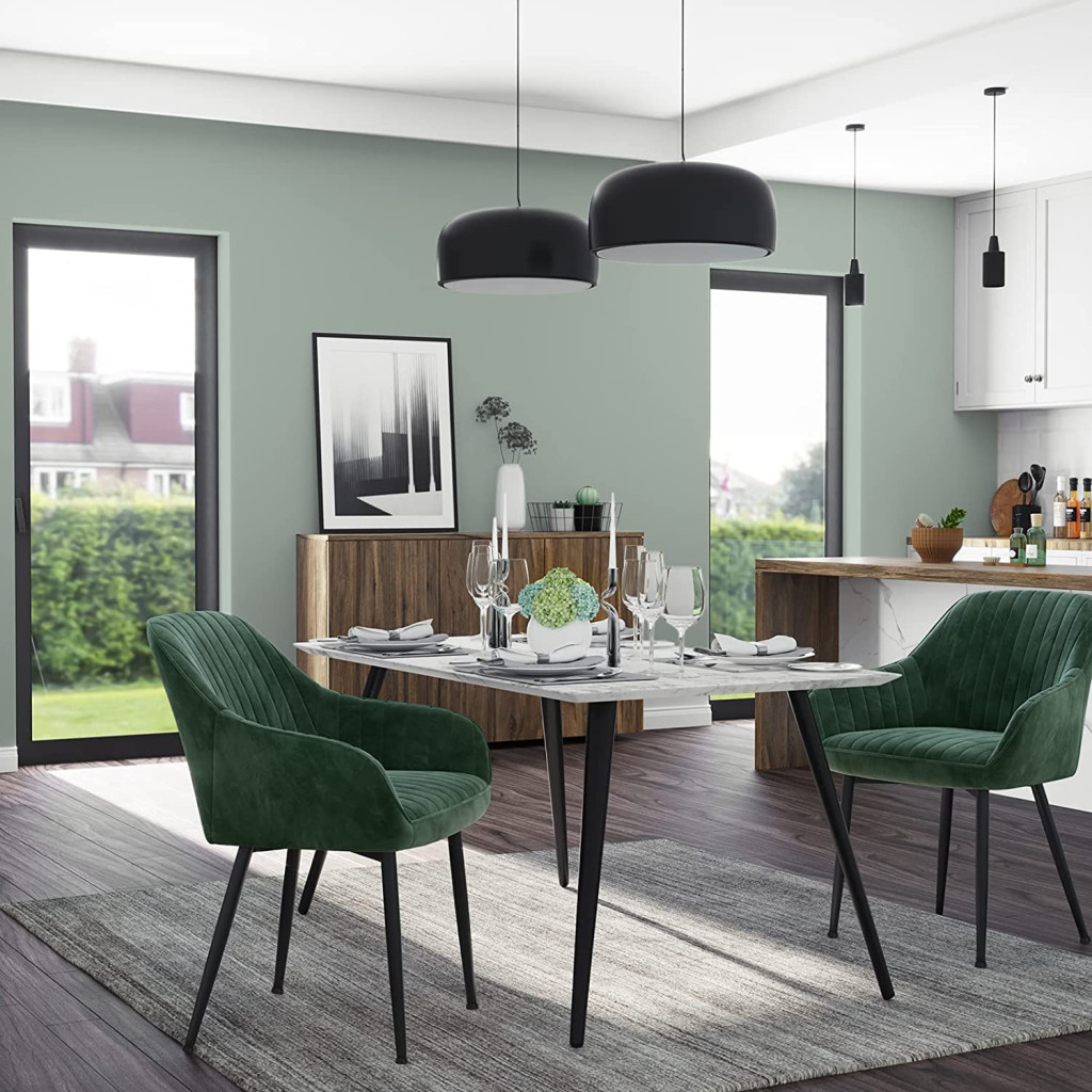 SONGMICS Bársony Étkezőszék Karfával Zöld