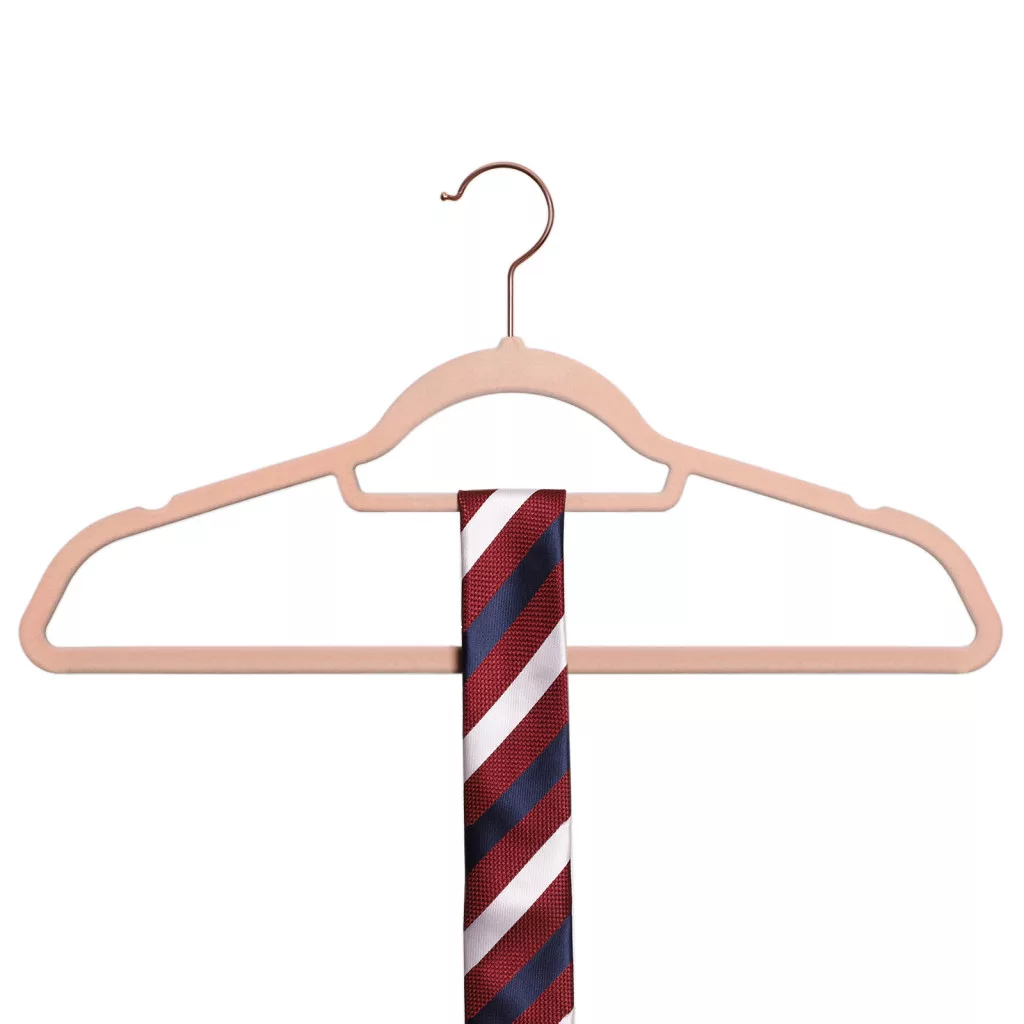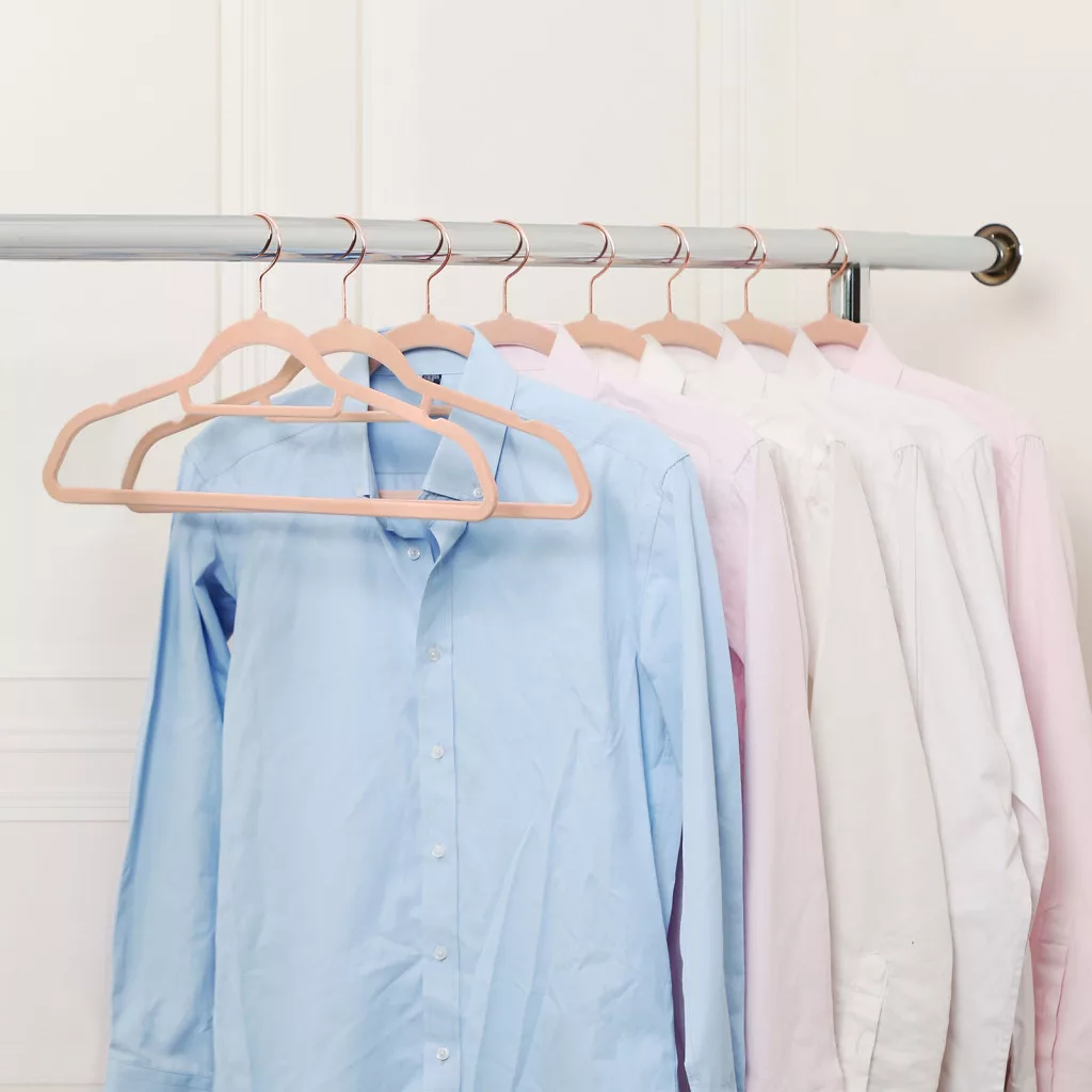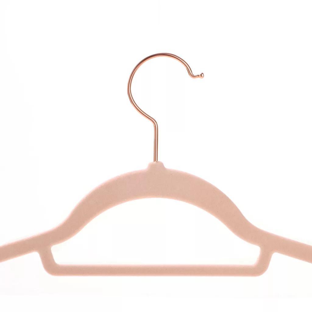 Prémium minőségű, csúszásmentes bársony vállfa szett rózsaarany akasztókkal, amely tökéletes megoldást nyújt ruhái elegáns és rendezett tárolásához.