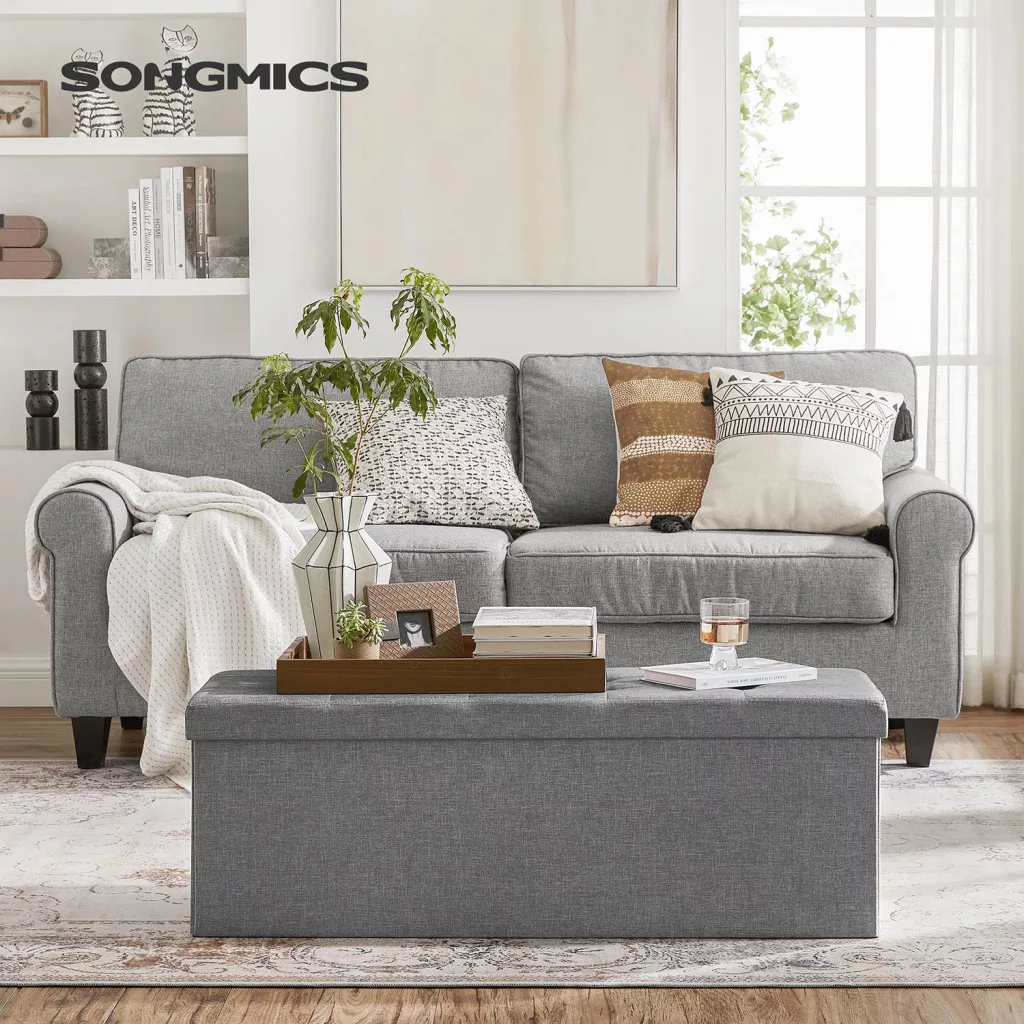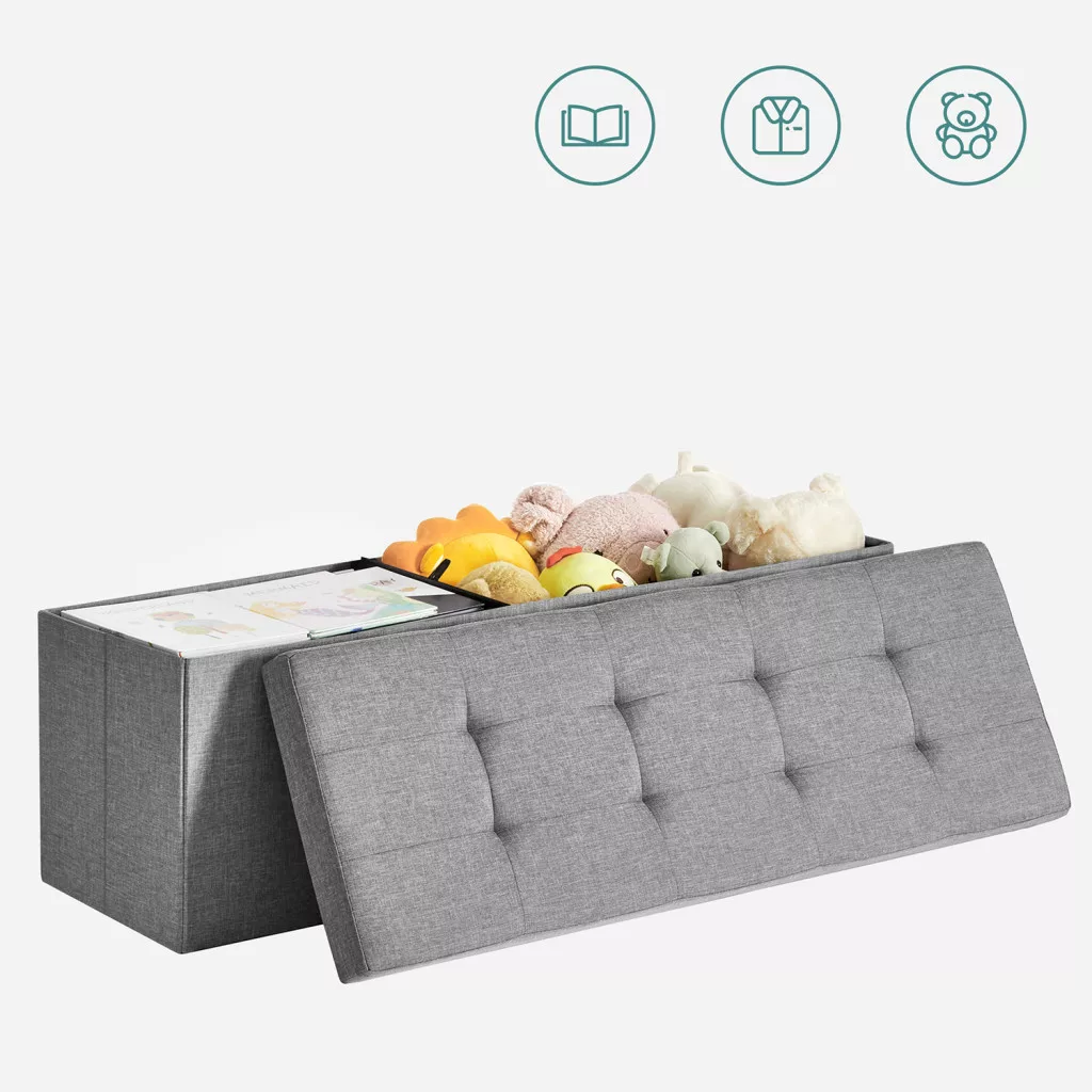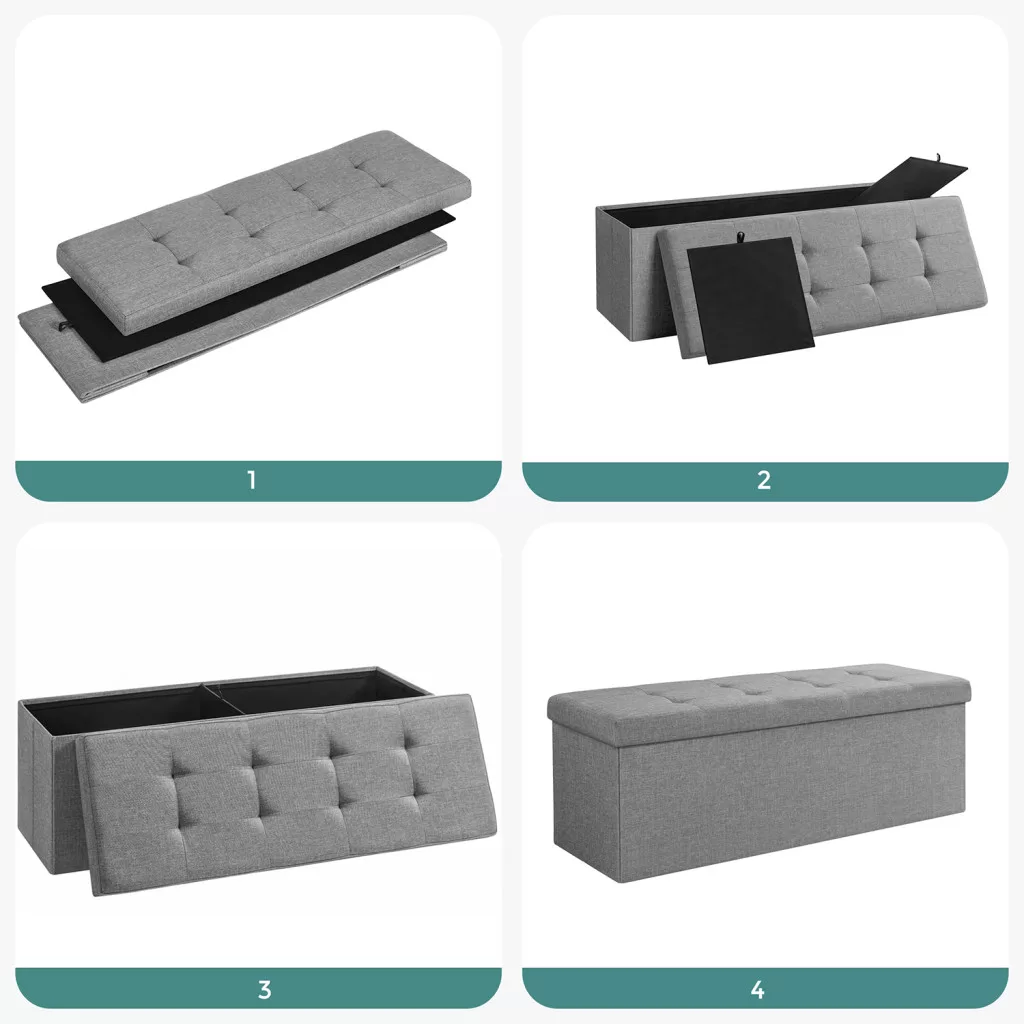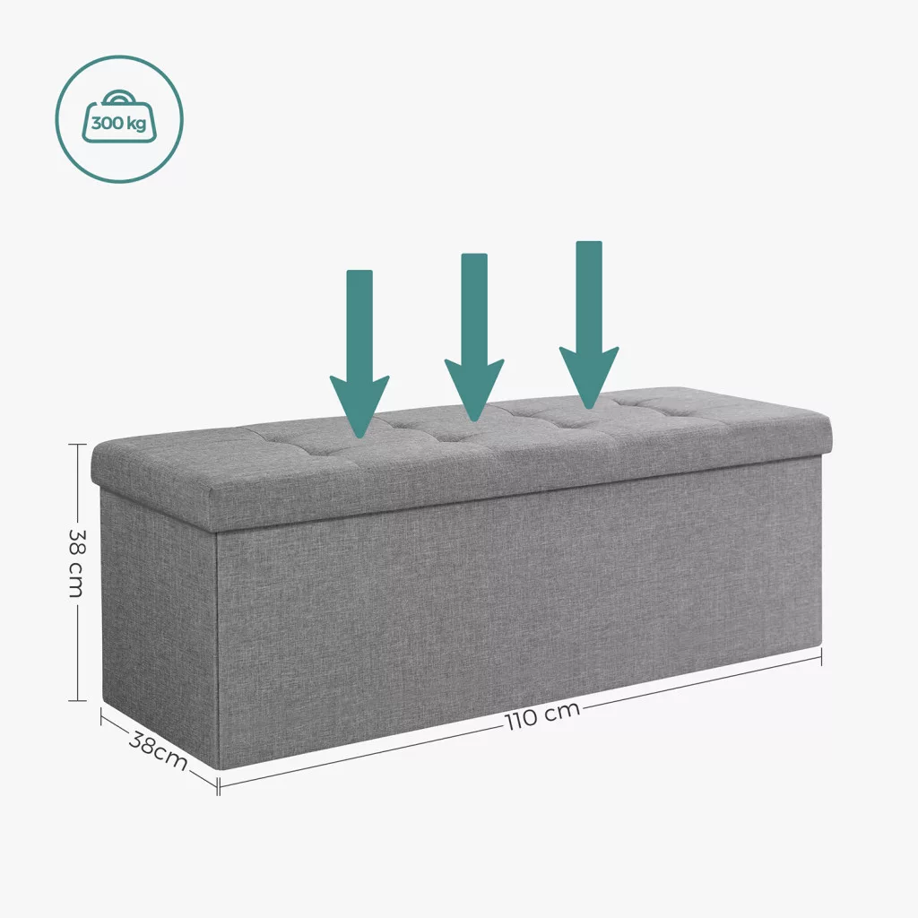 SONGMICS Chesterfield Összecsukható Tárolós Ülőpad Világosszürke