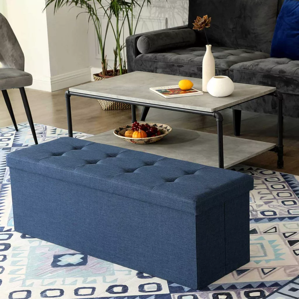 SONGMICS Chesterfield Tárolópad Összecsukható Ülőke Sötétkék