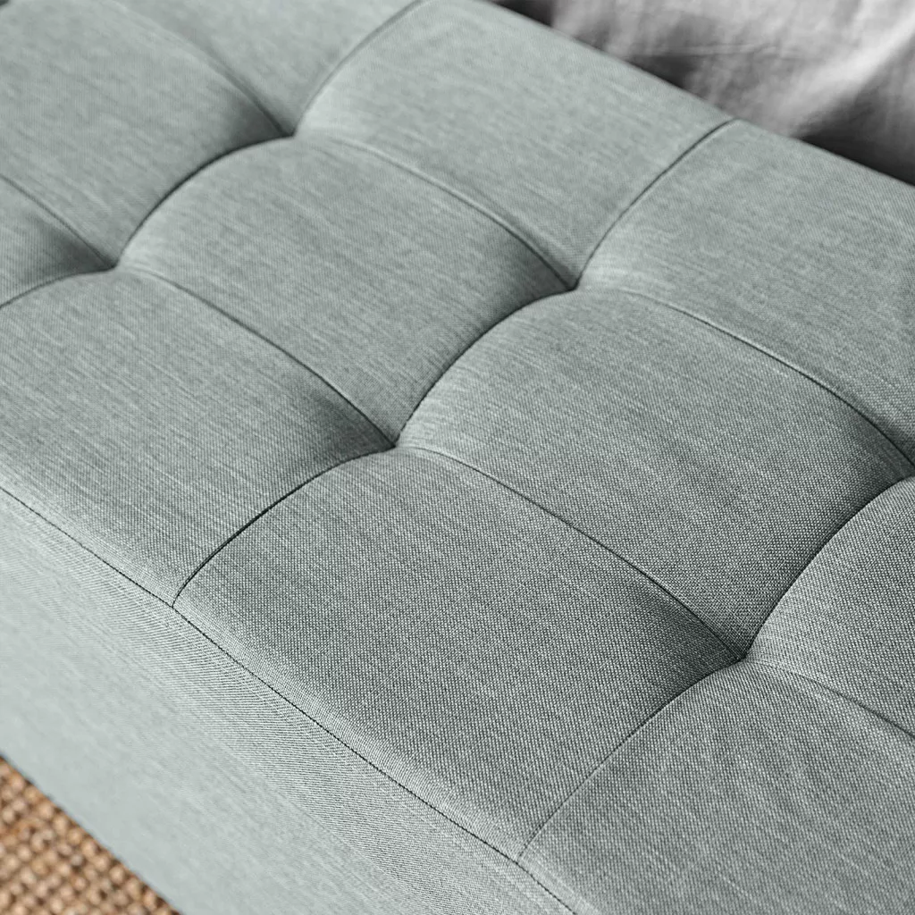 A tömörfa lábak nemcsak stílusos megjelenést kölcsönöznek, de védik is a padot a közvetlen padlóérintkezéstől. A 65 literes tárolókapacitás ideális megoldást kínál ágyneműk, ruhák és egyéb használati tárgyak rendezett tárolására.