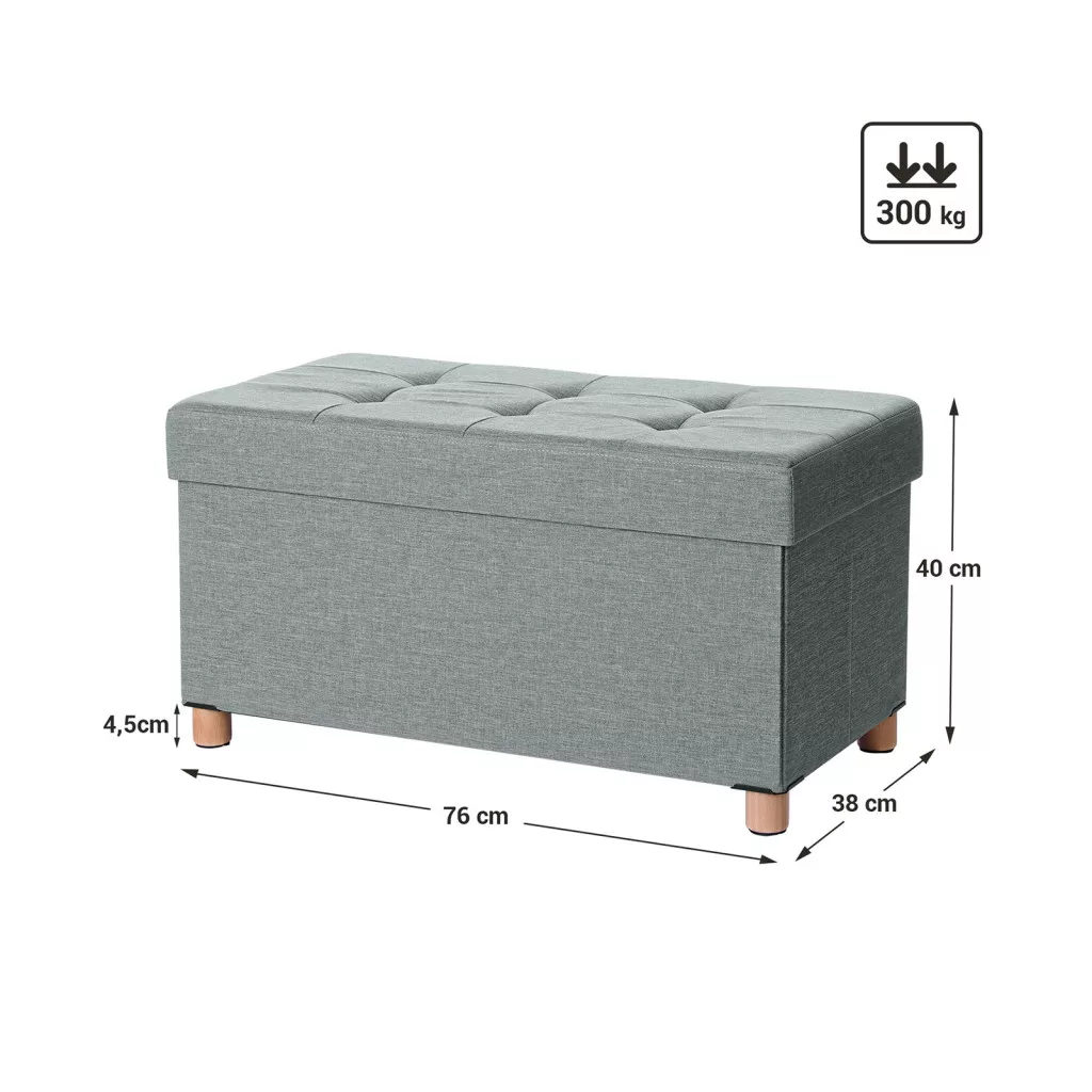 SONGMICS Chesterfield Tárolós Ülőpad Tömörfa Lábakkal Szürke