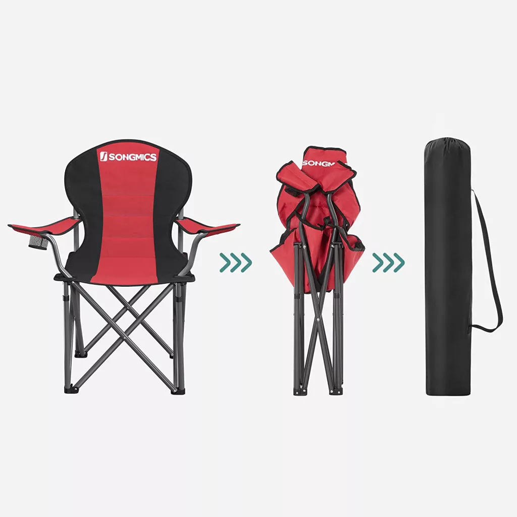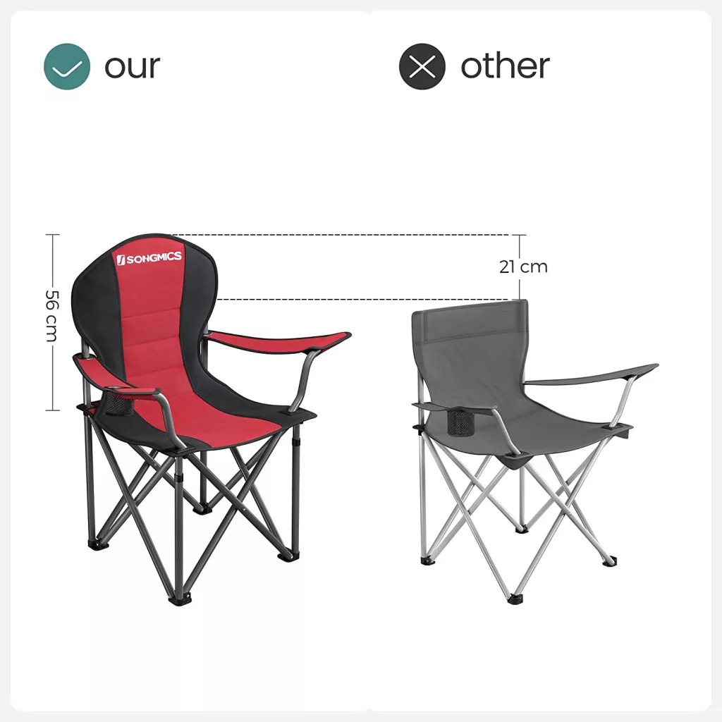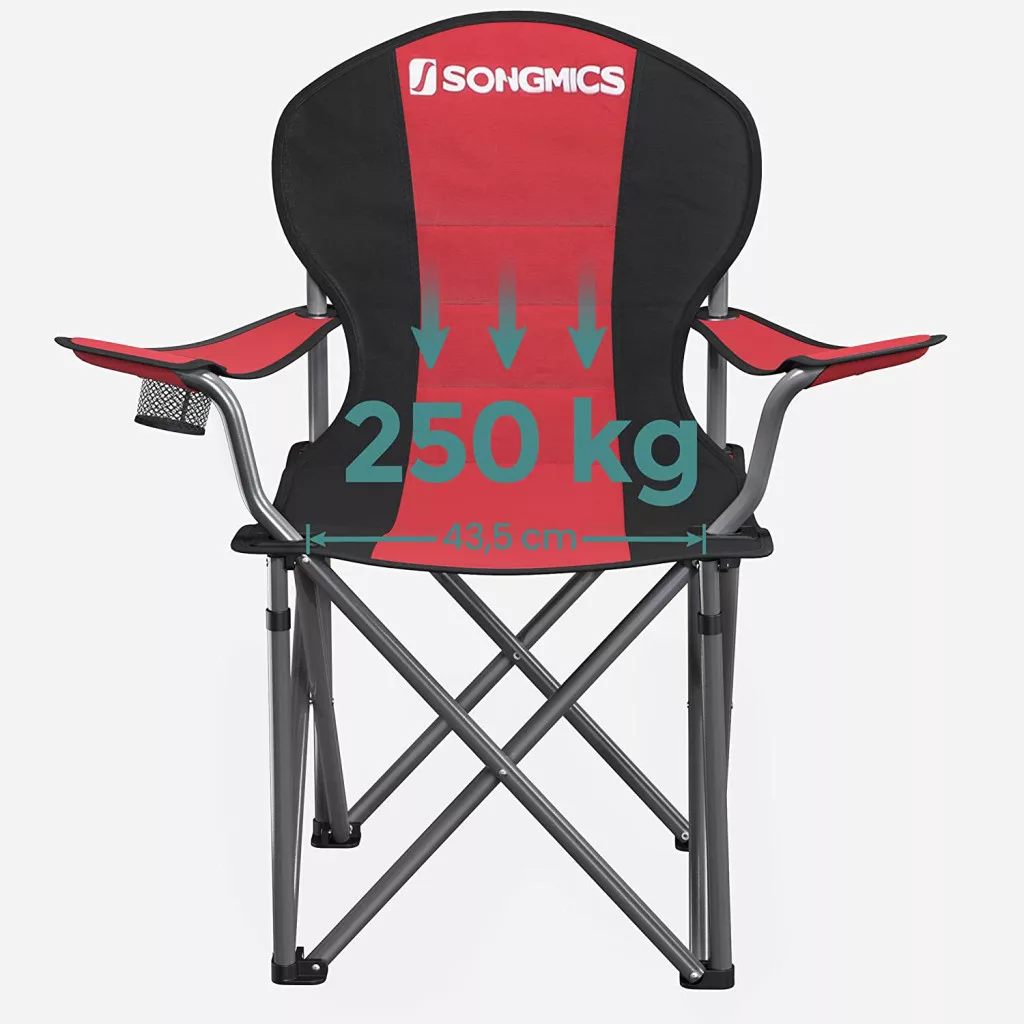 SONGMICS Comfort Párnázott Összecsukható Kempingszék Szett Pohártartóval Piros-Fekete