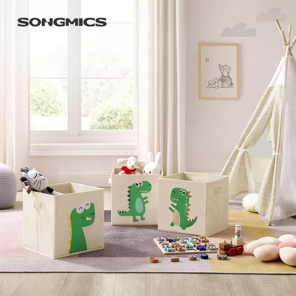 SONGMICS Dinoszauruszos Tárolódoboz Szett Bézs Gyerekszobába