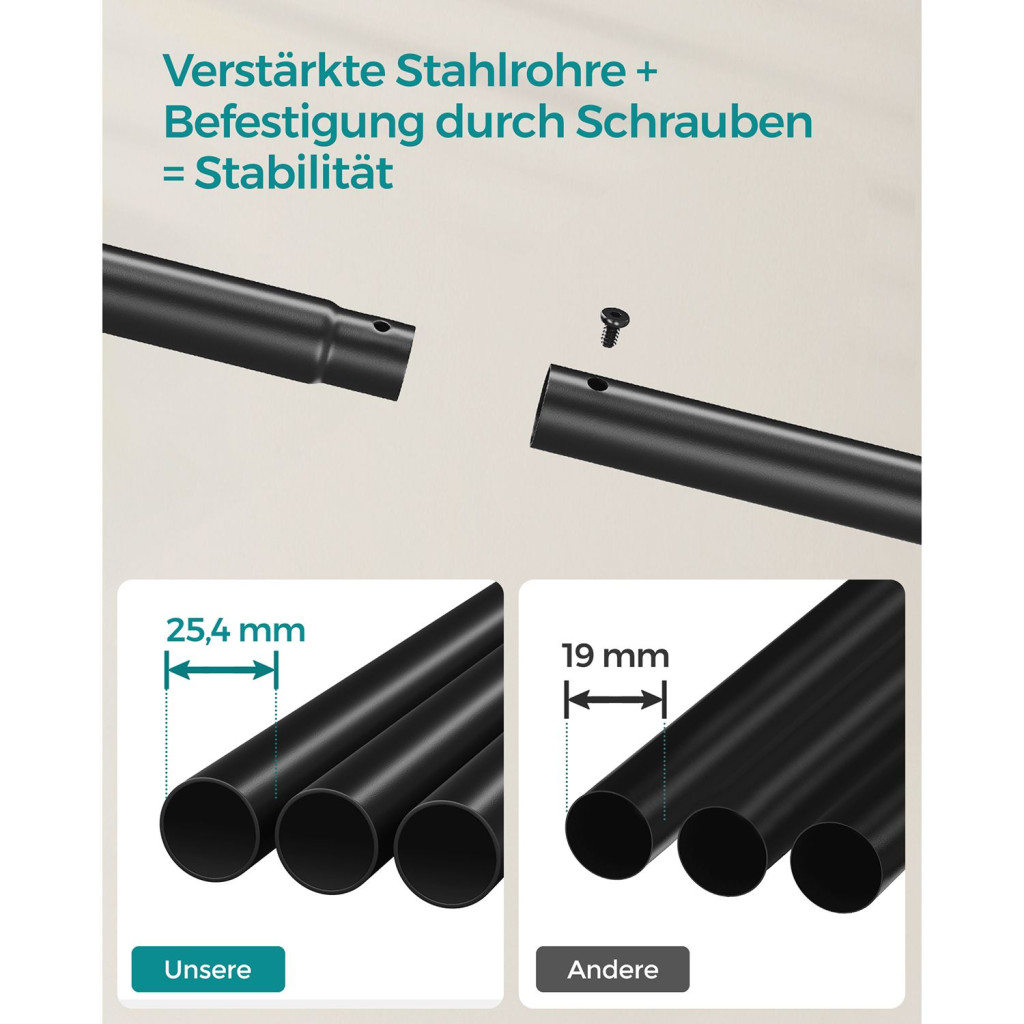 SONGMICS Dupla Ruhaállvány Görgős Fém Vázas Fekete Tárolópolccal