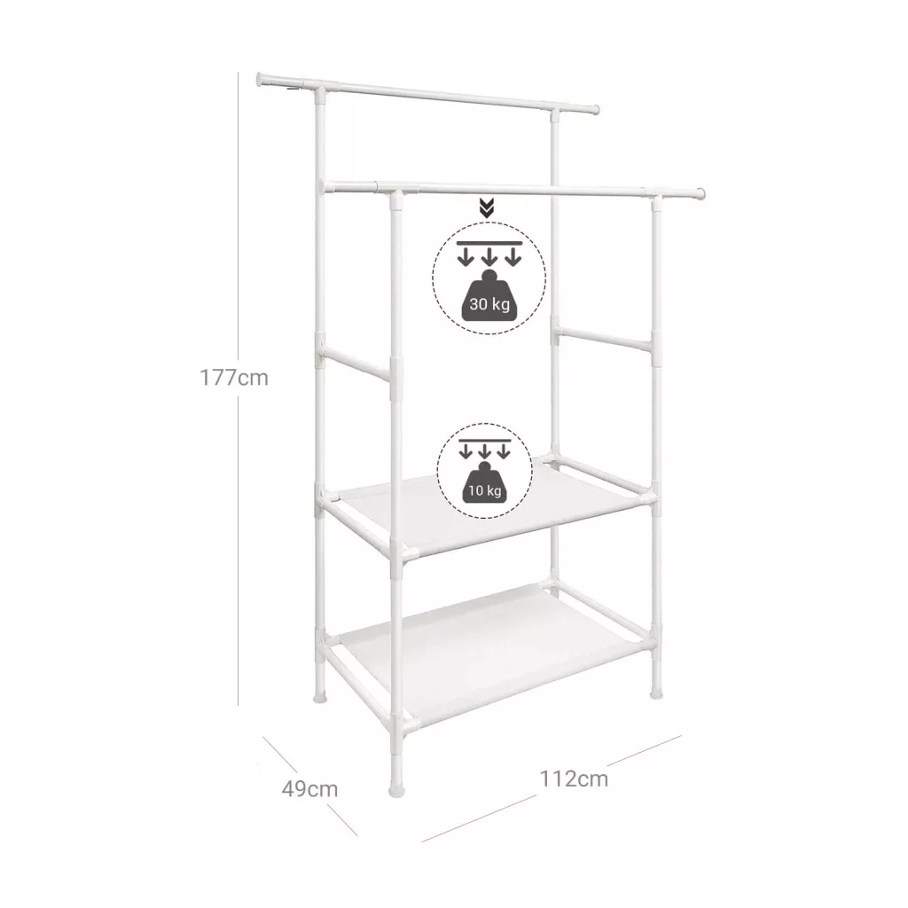 SONGMICS Dupla Sínű Fehér Fém Ruhaállvány Tárolópolcokkal