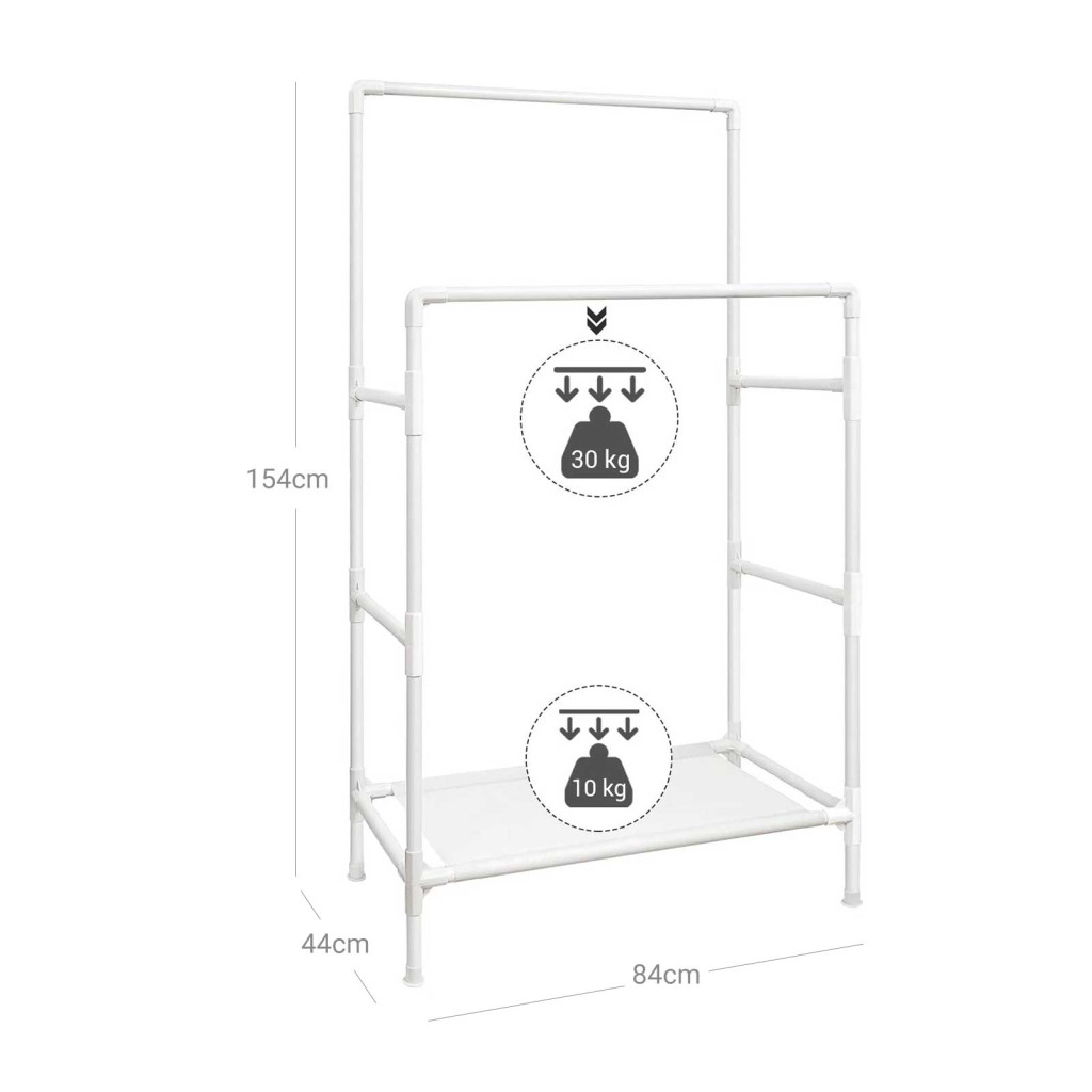 SONGMICS Dupla Sínű Fém Ruhaállvány Polccal Fehér