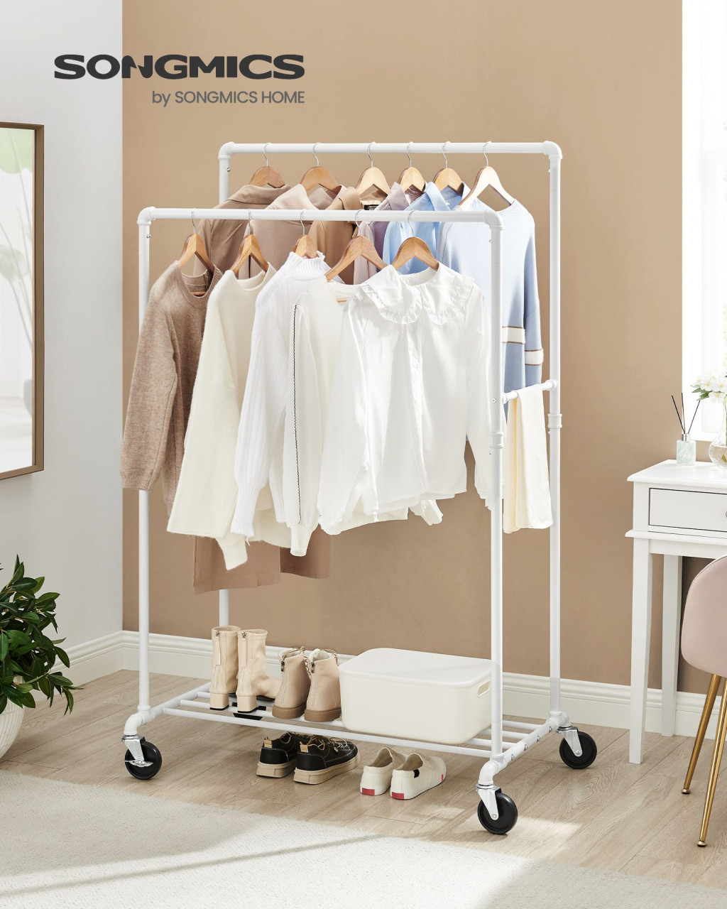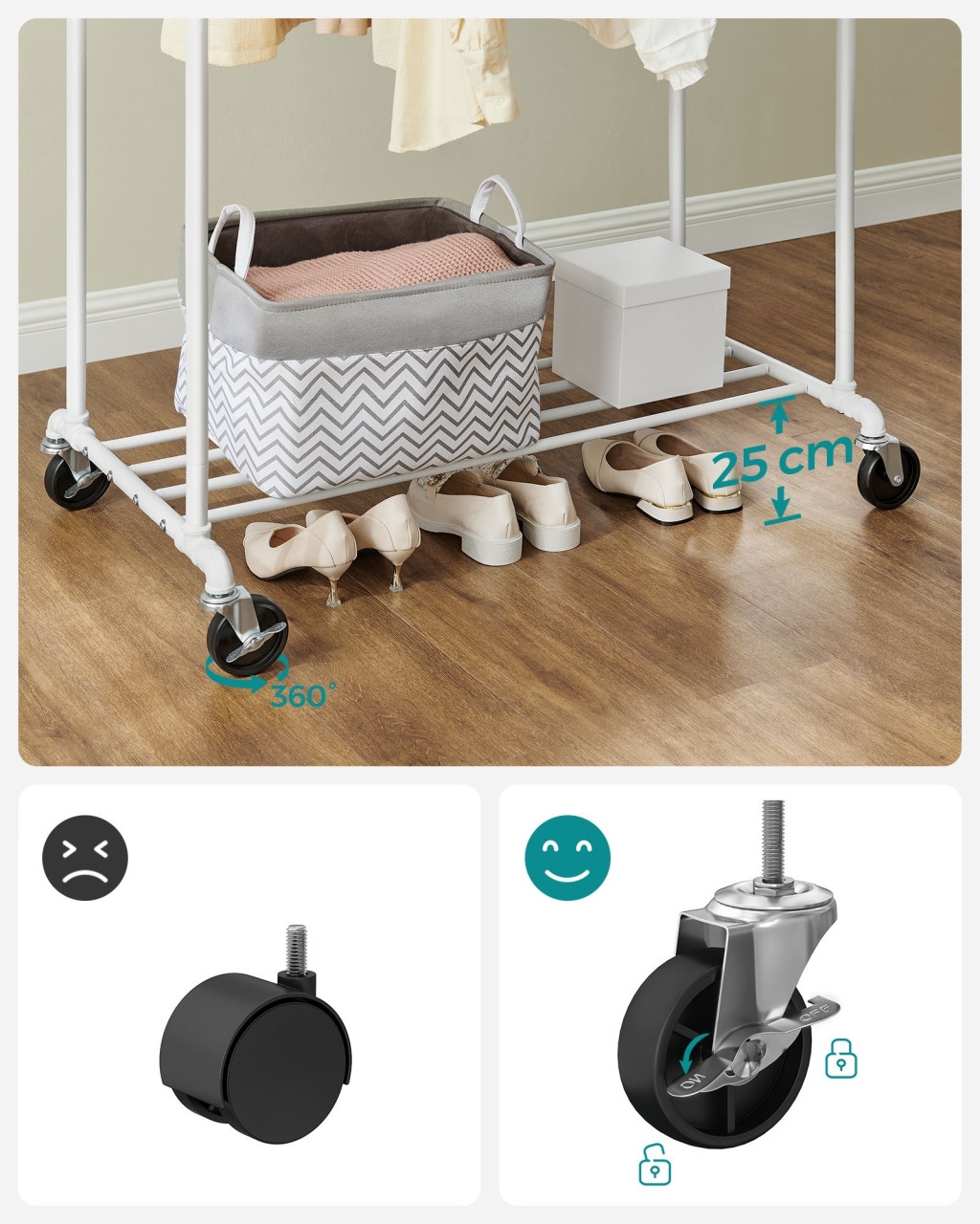 SONGMICS Dupla Soros Gurulós Ruhaállvány Fehér Acél Ipari Stílusú
