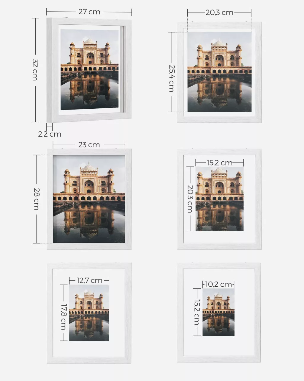 SONGMICS Dupla Üveges Fehér MDF Képkeret Szett