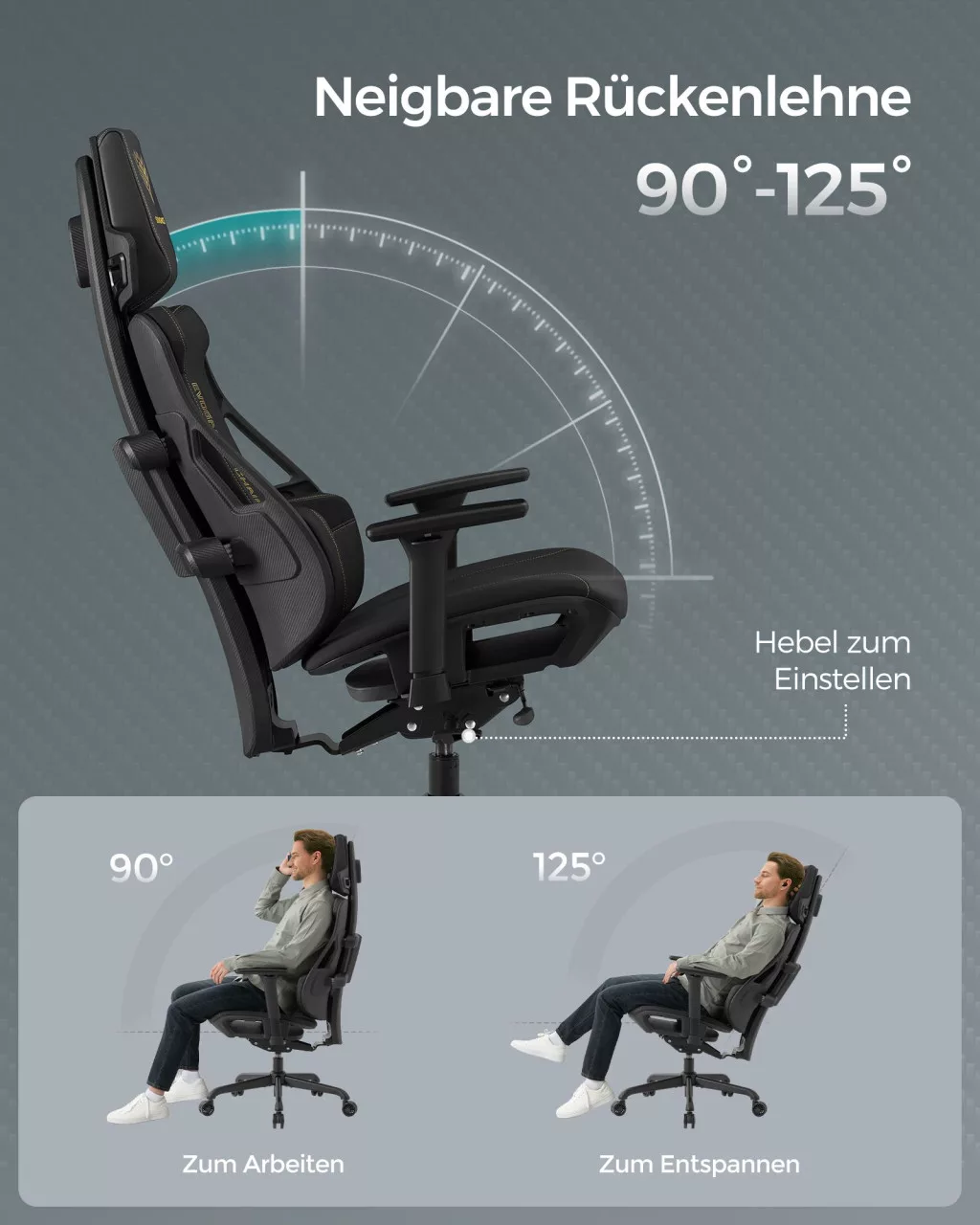 A SONGMICS EVOGAMER gaming szék ötvözi a modern technológiát és az ergonomikus kialakítást. A karbon hatású külső borítás és a fekete színvilág tökéletesen illeszkedik minden gaming setuphoz. A 125°-ig dönthető háttámla és a 4-pontos H-alakú támasztórendszer kiváló támaszt nyújt a hosszú gaming sessionök során.