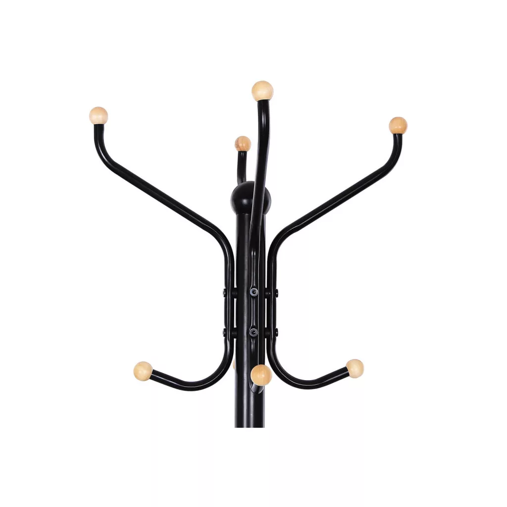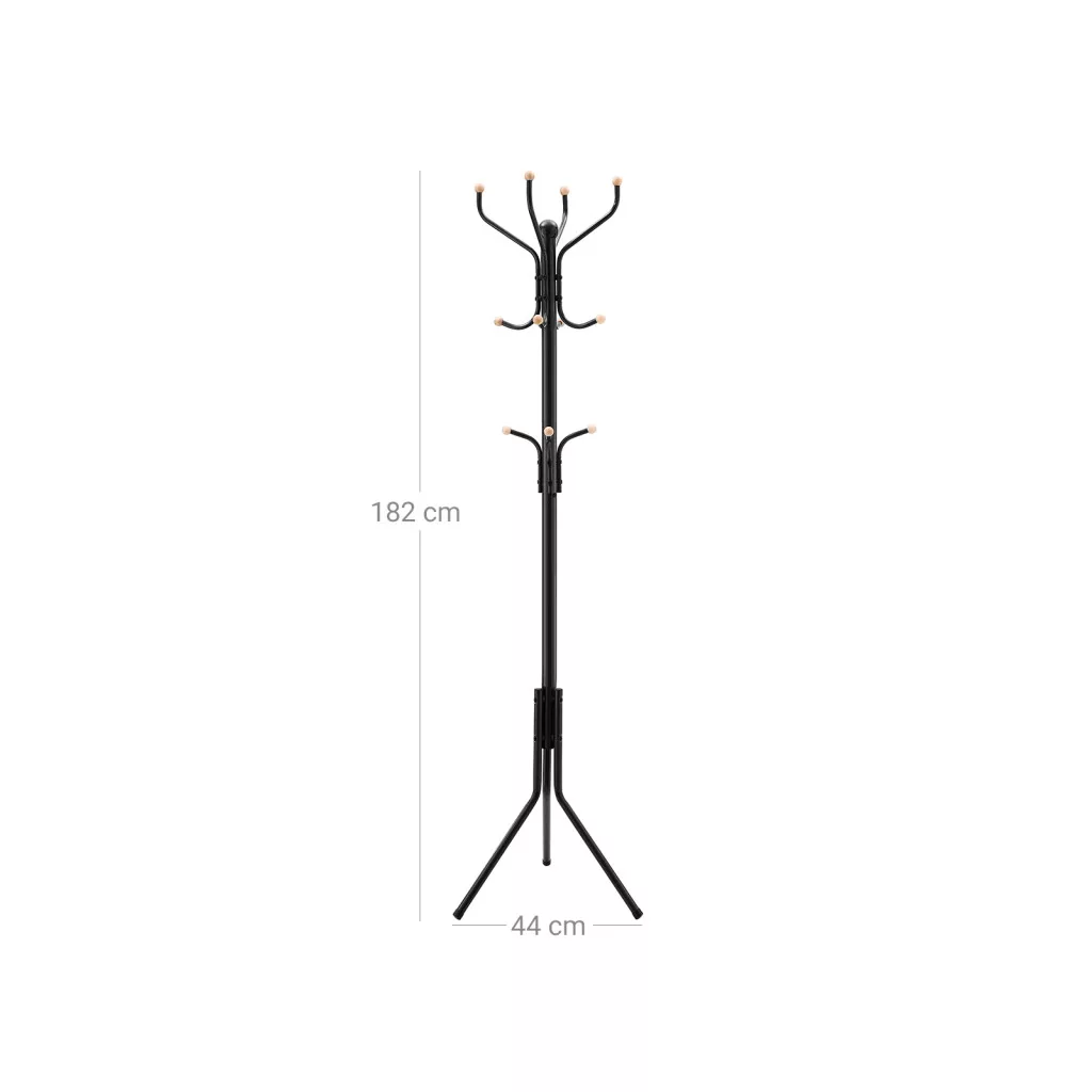 Stílusos és praktikus fém ruhafogas állvány 12 akasztóval, amely tökéletes megoldást nyújt kabátok, táskák és kalapok tárolására az előszobában vagy hálószobában.
