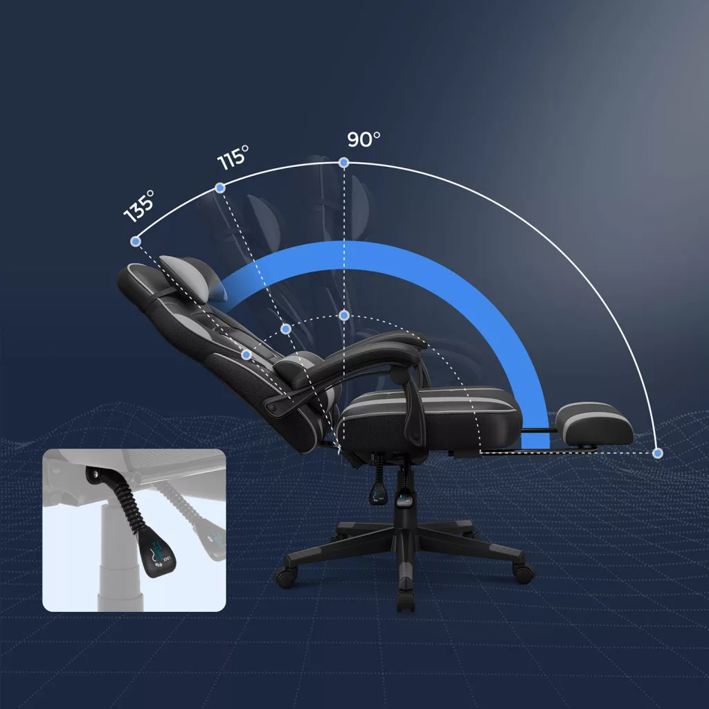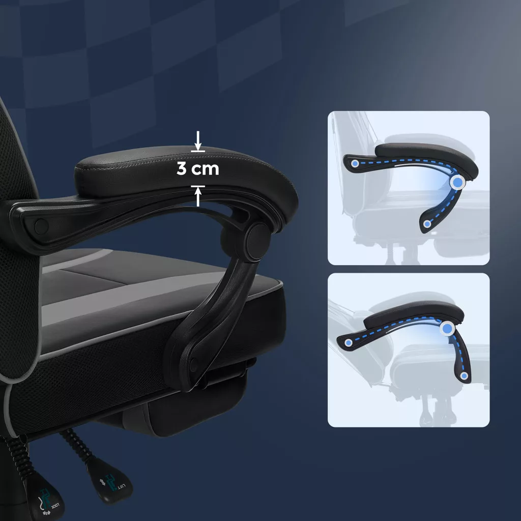 SONGMICS Ergonomikus Gamer Szék Lábtartóval Fekete-Szürke