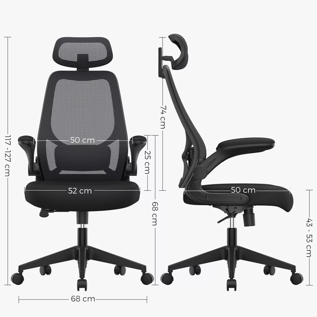 SONGMICS Ergonomikus Irodai Szék Állítható Fejtámlával és Kartámasszal Fekete