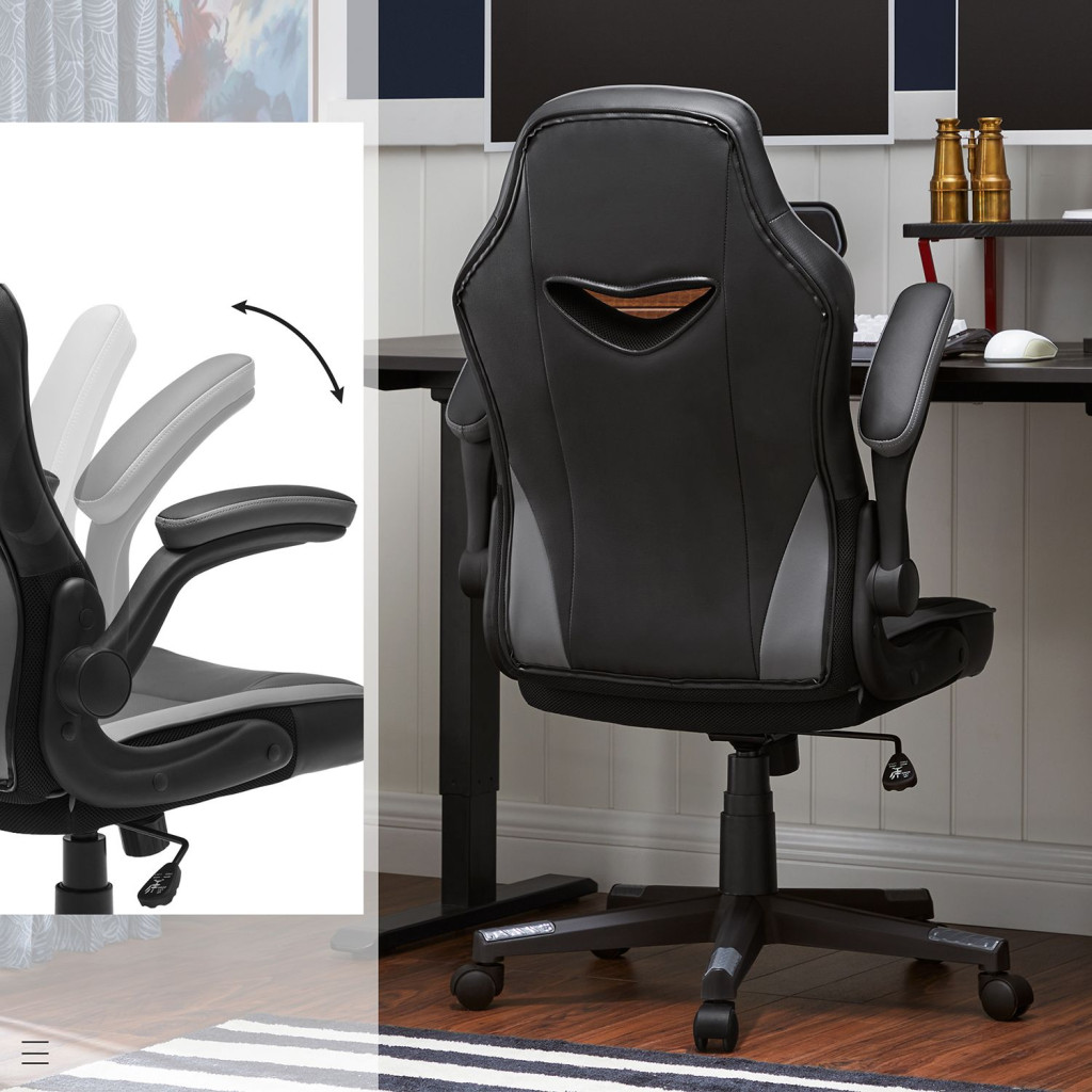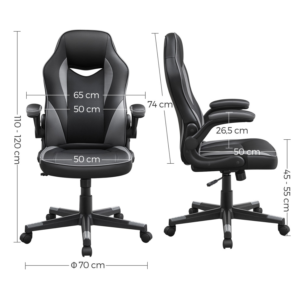 SONGMICS Ergonomikus Irodai Szék Fekete-Szürke PU Bőr Állítható Magasságú