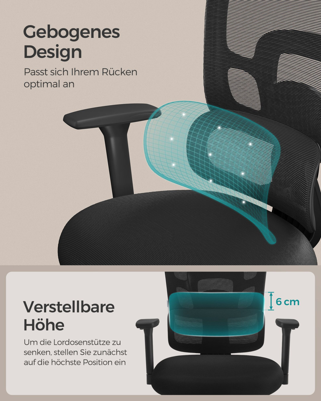 SONGMICS Ergonomikus Irodai Szék Magas Háttámlával Fekete
