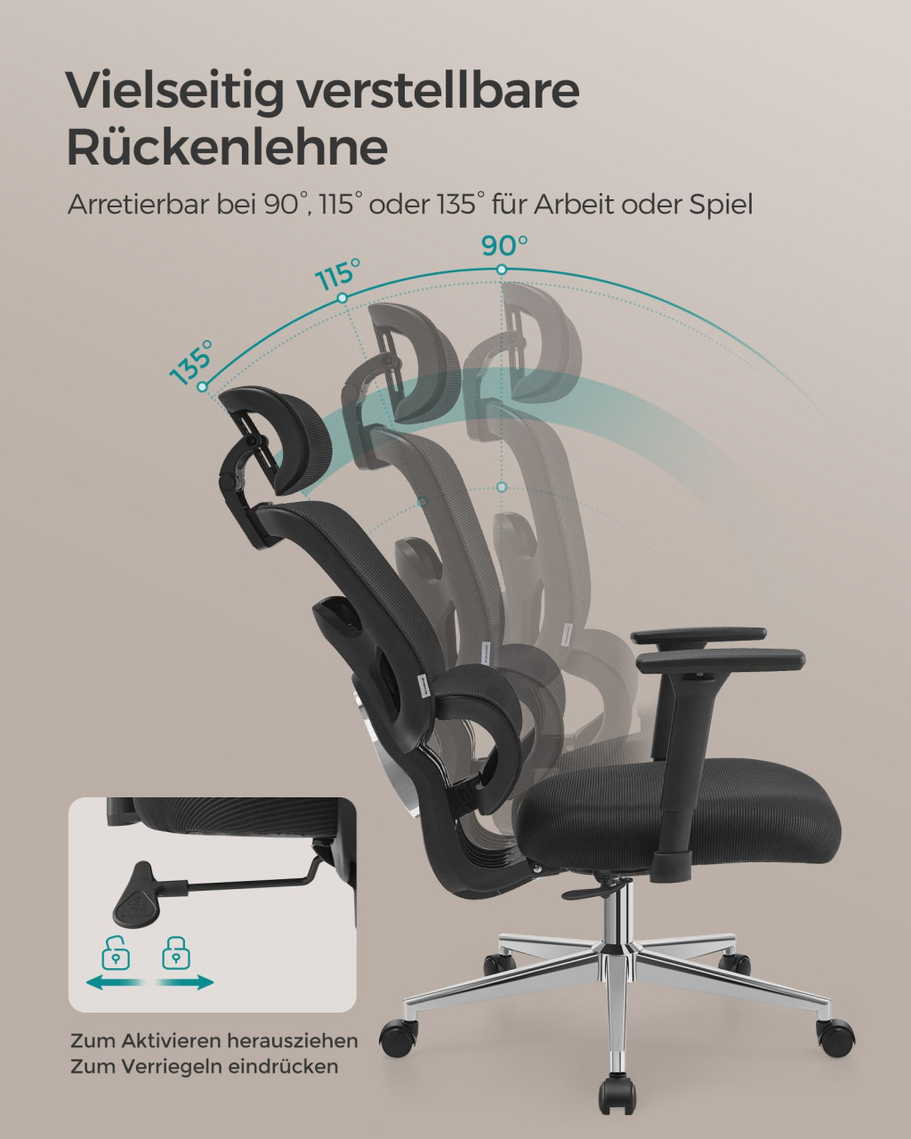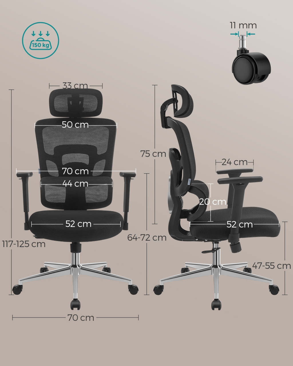 Ez a professzionális irodai szék ötvözi a modern dizájnt és az ergonomikus kialakítást. A légáteresztő háttámla és a kényelmes ülőpárna hosszú órákon át biztosítja a komfortérzetet. A 6 cm-es magasságban állítható deréktámasz és a 90°-135° között dönthető háttámla tökéletesen alkalmazkodik az Ön testtartásához.