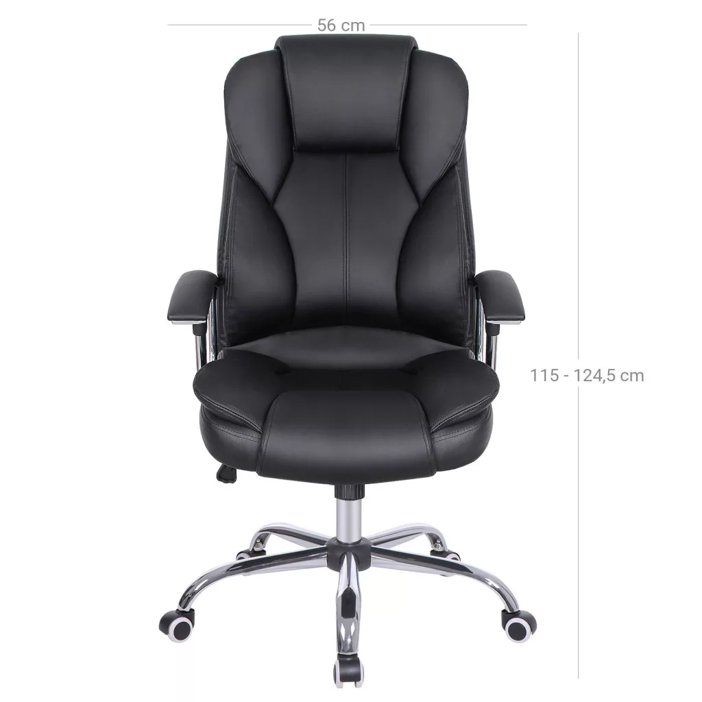 SONGMICS Executive Fekete Műbőr Irodai Szék Ergonomikus Fejtámlával