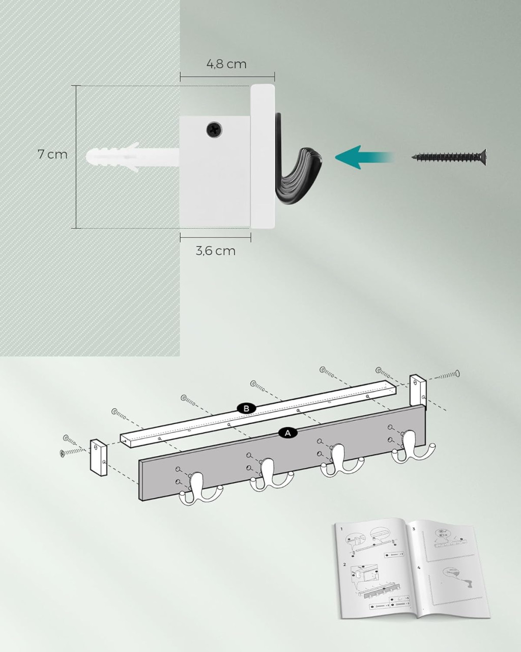 • Nagy teherbírás: Összesen 16 kg-os teherbírás, akasztónként 4 kg