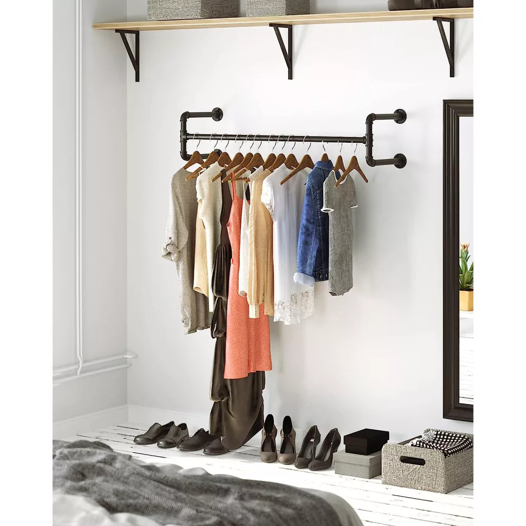 A SONGMICS fali ruhafogás készlet tökéletes választás azok számára, akik maximalizálni szeretnék a rendelkezésre álló teret otthonukban. Az ipari stílusú fekete csőkeret design modern megjelenést kölcsönöz bármely helyiségnek, legyen az előszoba, hálószoba vagy mosókonyha. A 30 cm-es távolság a fal és a rúd között elegendő helyet biztosít a legtöbb vállfa és ruhadarab számára, így kedvenc ruhái nem érnek a falhoz és nem gyűrődnek meg.