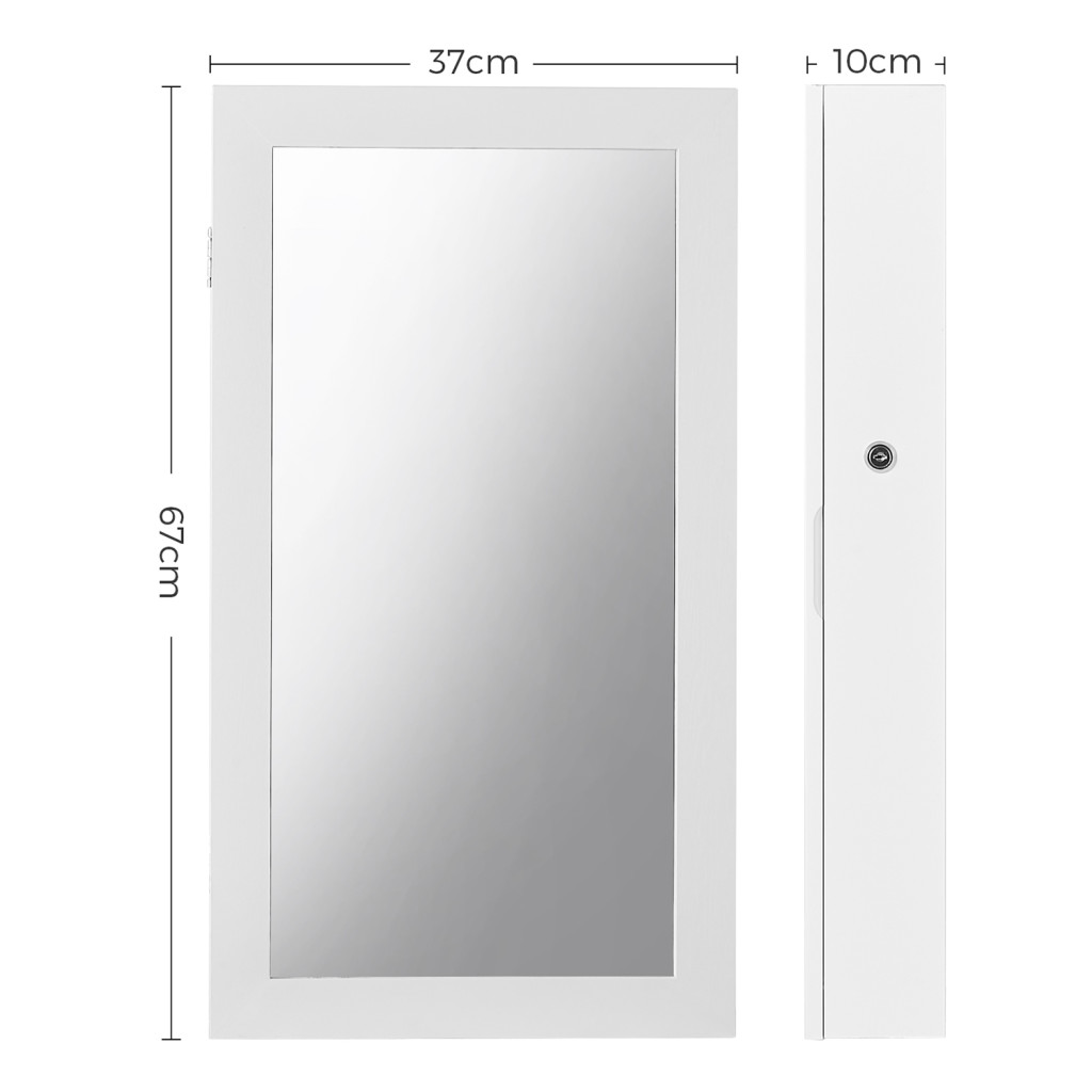 SONGMICS Fehér Tükrös Zárható Ékszertartó Szekrény Falra Szerelhető