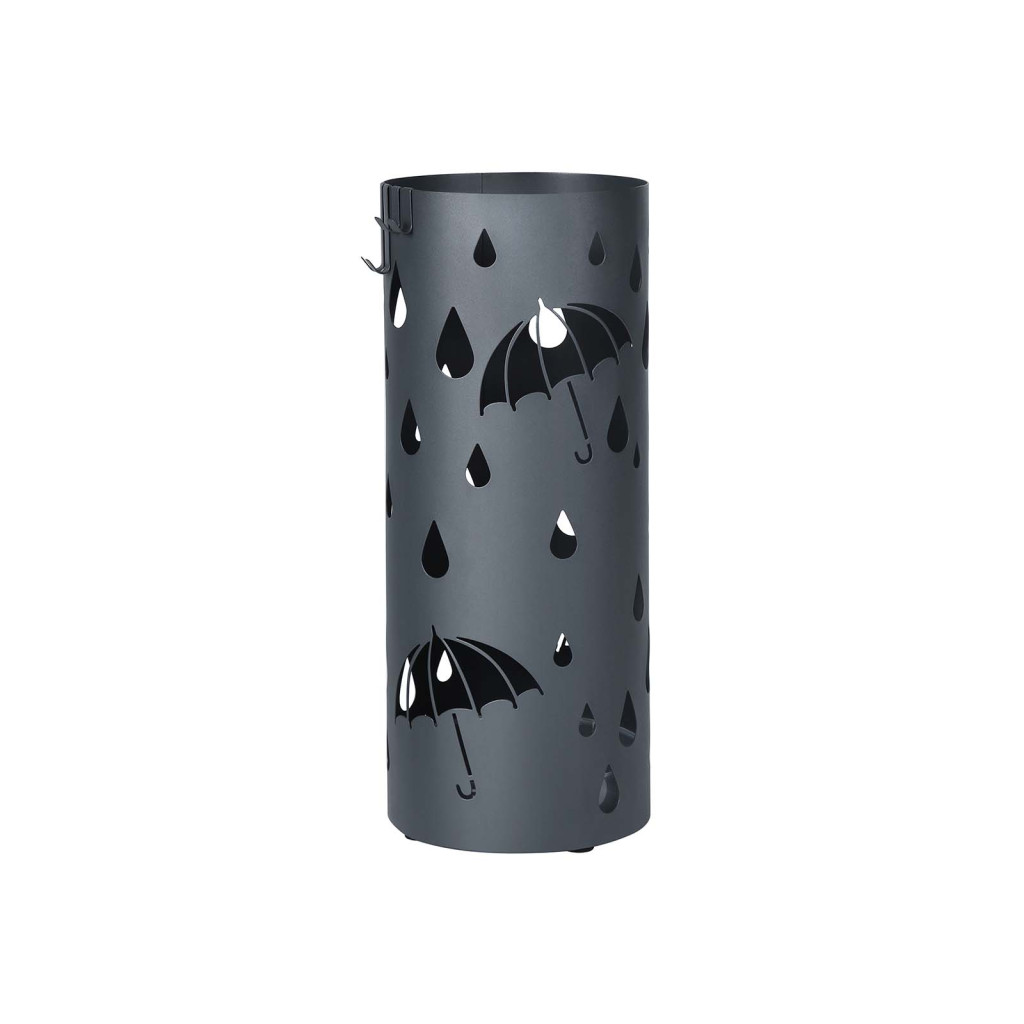 Tartsa rendben előterét ezzel a stílusos fém esernyőtartóval, amely víztálcával és praktikus akasztókkal érkezik. A matt antracitszürke felület és az egyedi esőcsepp mintázat modern eleganciát kölcsönöz otthonának.