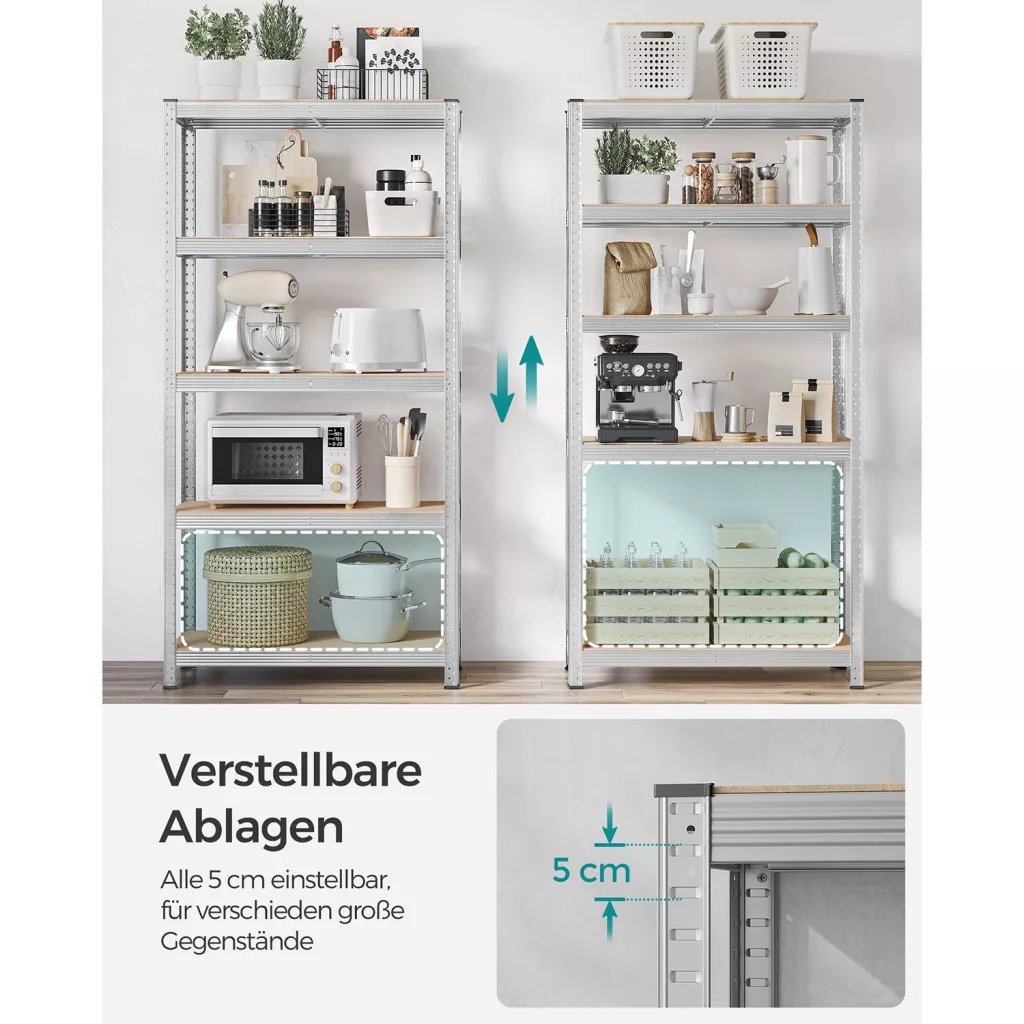 A polcok 5 cm-enként állíthatók, így testre szabhatja a tárolóteret az igényeinek megfelelően. A készlet két független egységre is szétválasztható, tovább növelve a felhasználási lehetőségeket.