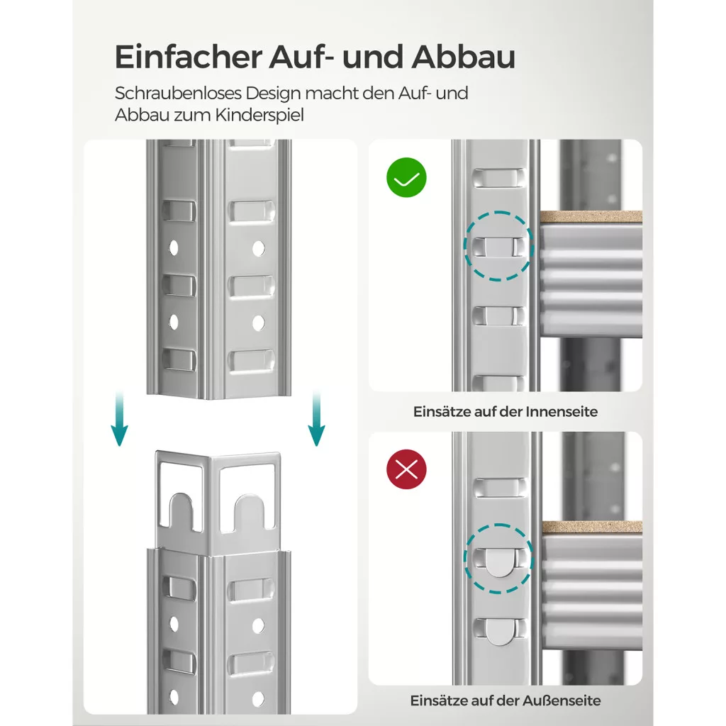 SONGMICS GLR040E02 Nagy Teherbírású Acél Polcrendszer Szett Ezüst