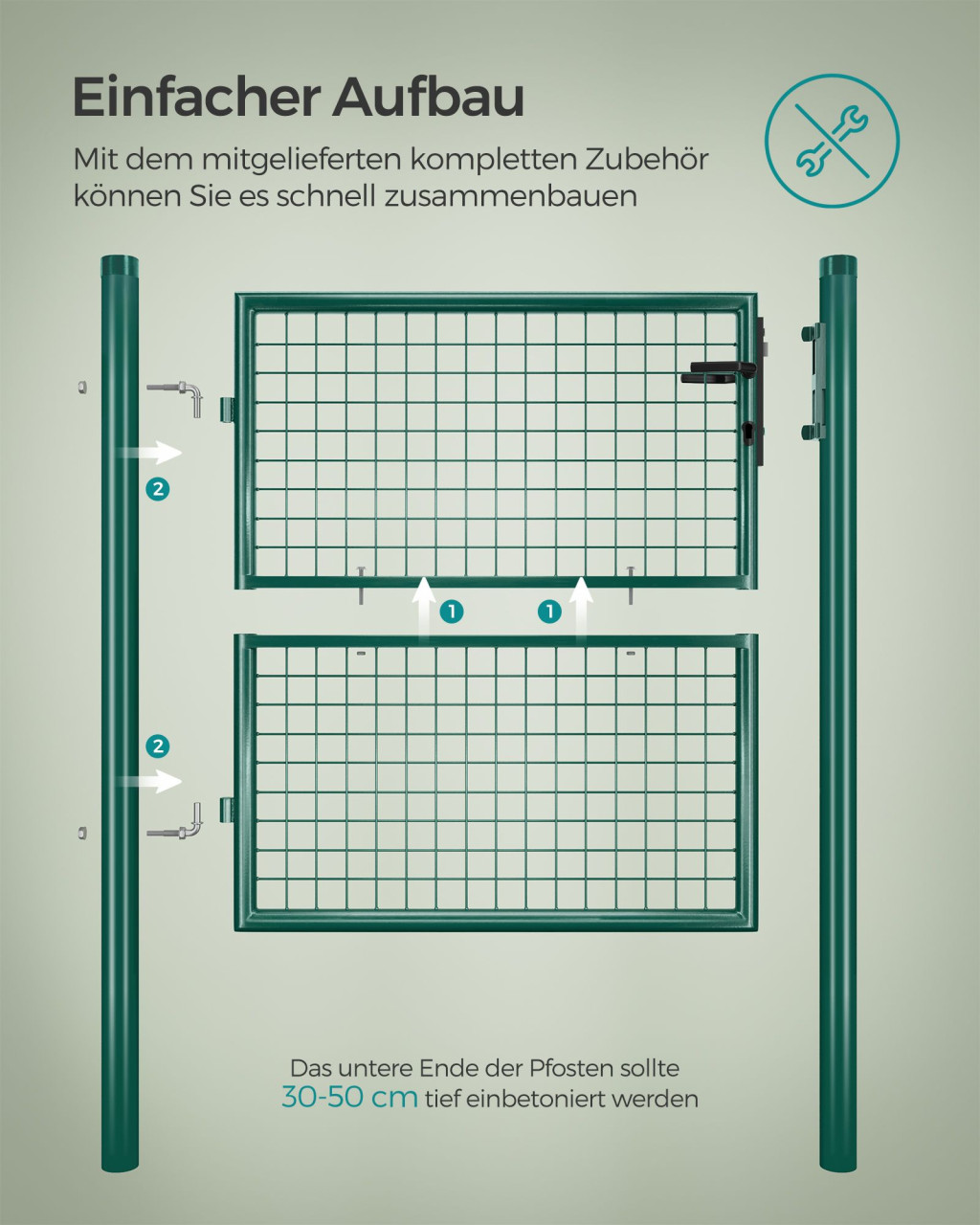 SONGMICS Galvanizált Acél Kerti Kapu Zárható Zöld