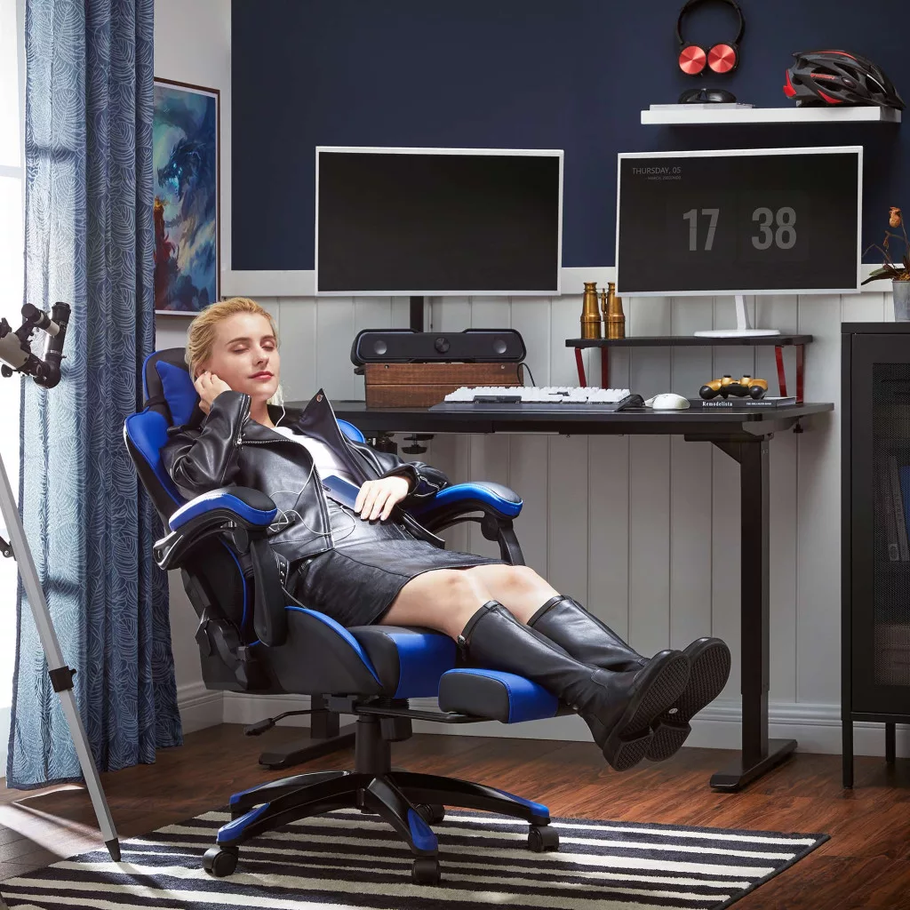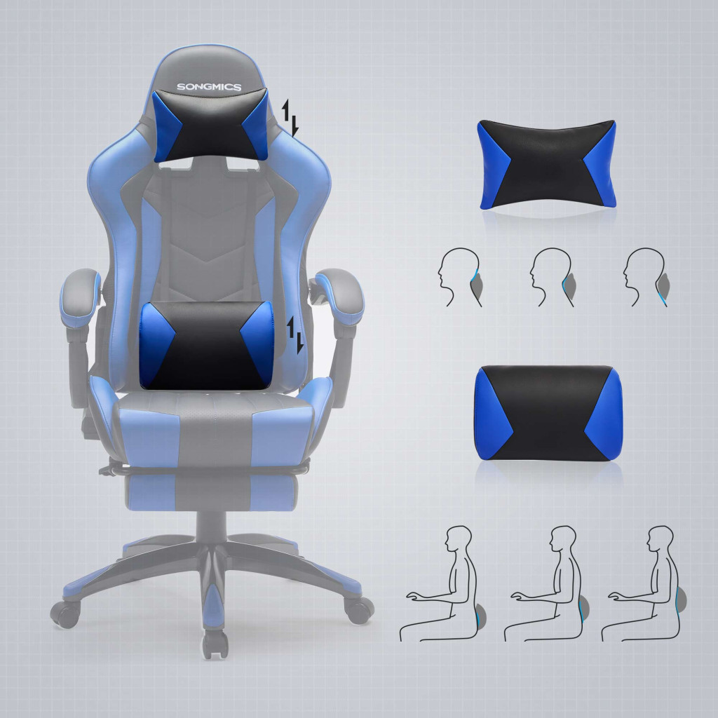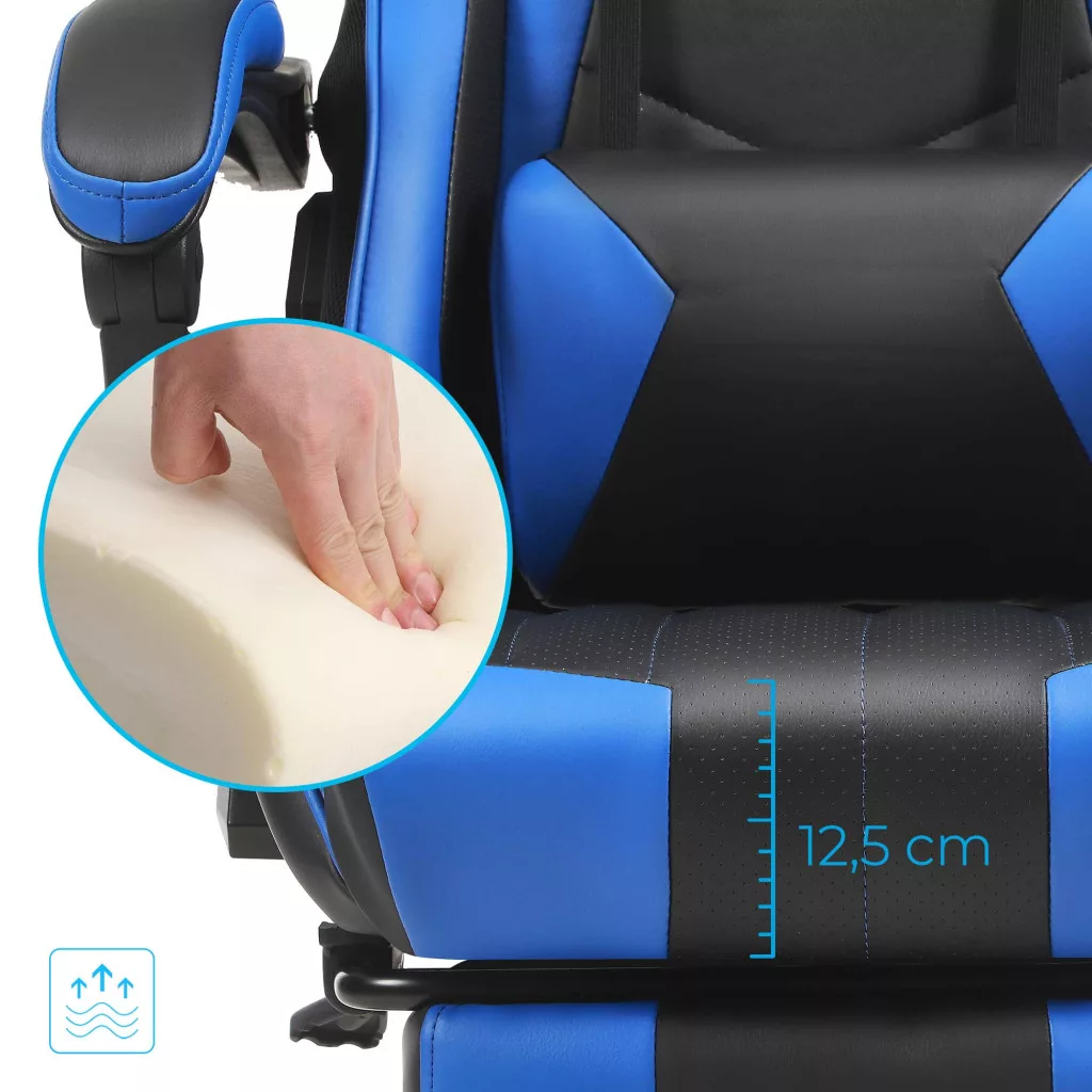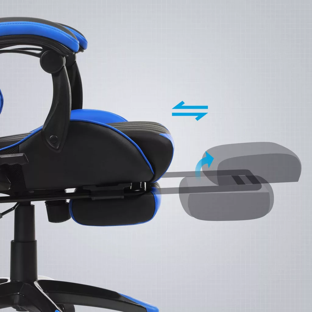 SONGMICS Gaming Szék Ergonomikus Gamer Szék Kihúzható Lábtartóval Fekete-Kék