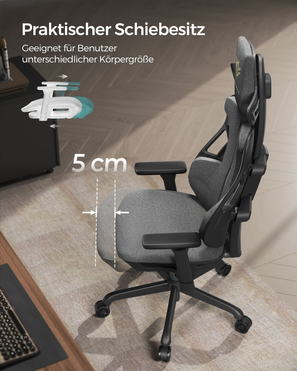 • Csúsztatható ülőlap: 5 cm-es állíthatóság a tökéletes lábtartásért