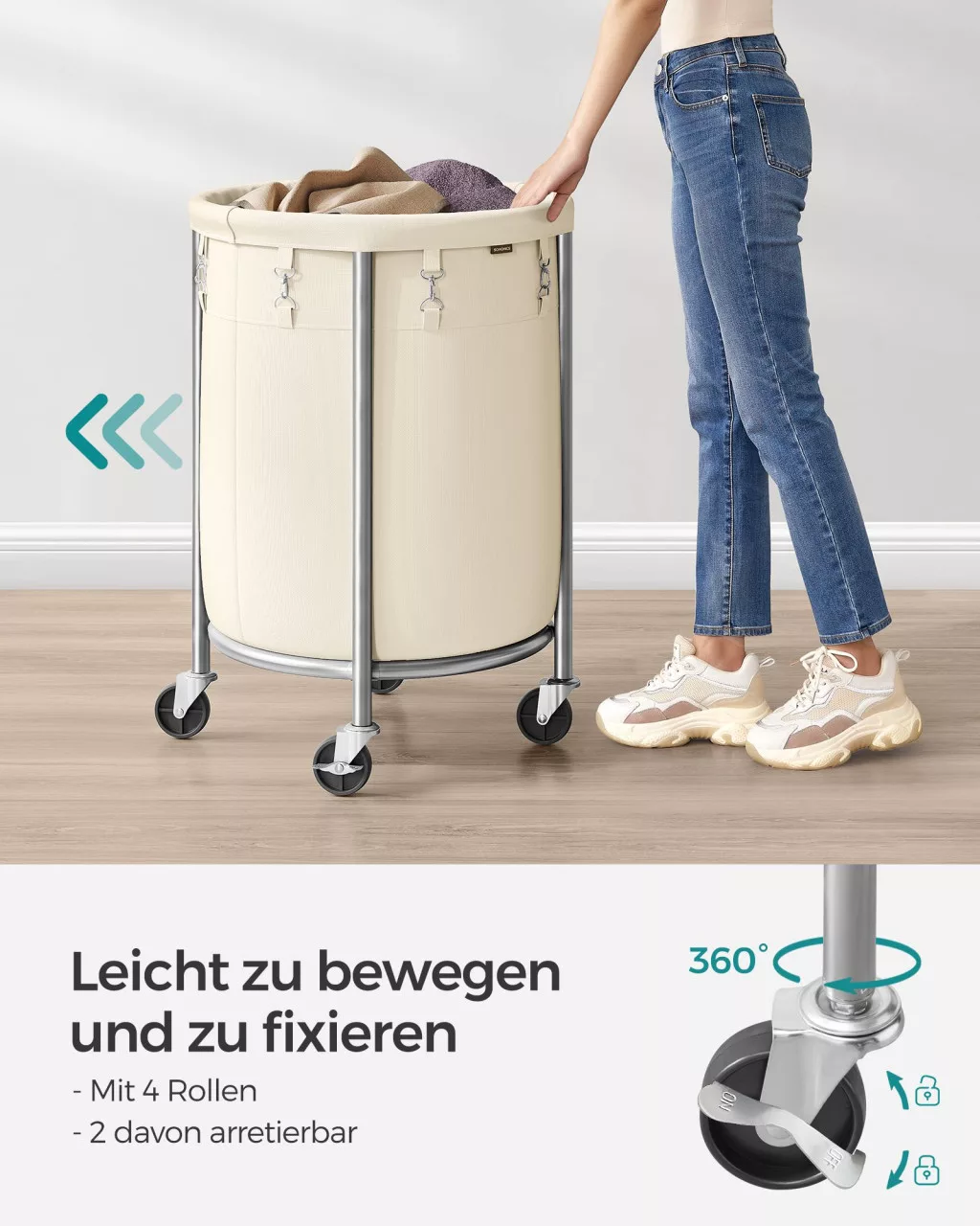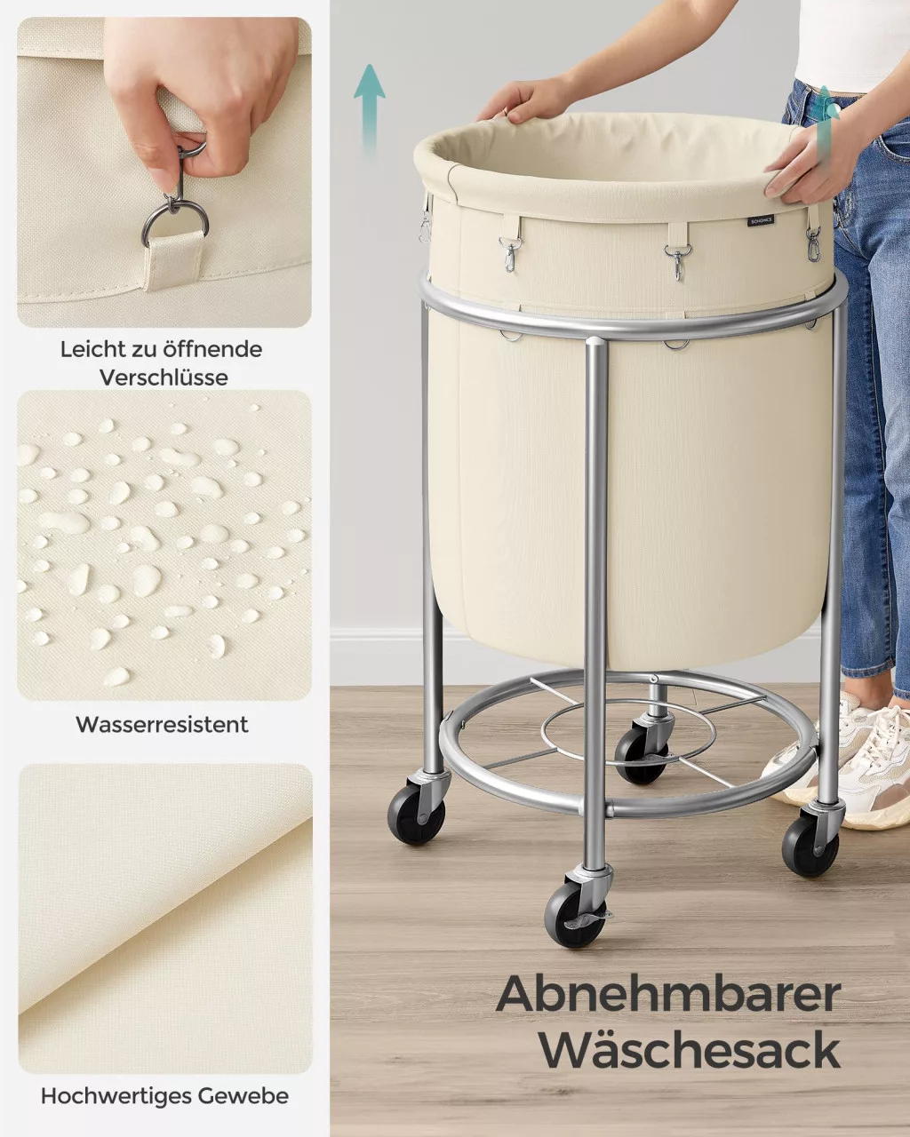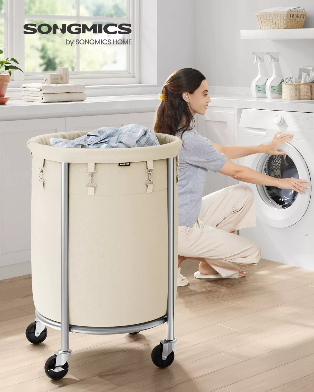 SONGMICS Gördülő Szennyestartó 110L Kerekes Mosodai Kosár Krémszínű