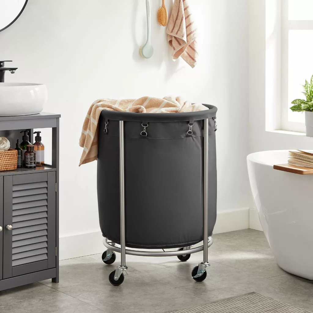 SONGMICS Gördülő Szennyestartó Kosár 170L Fekete/Ezüst Acélvázzal