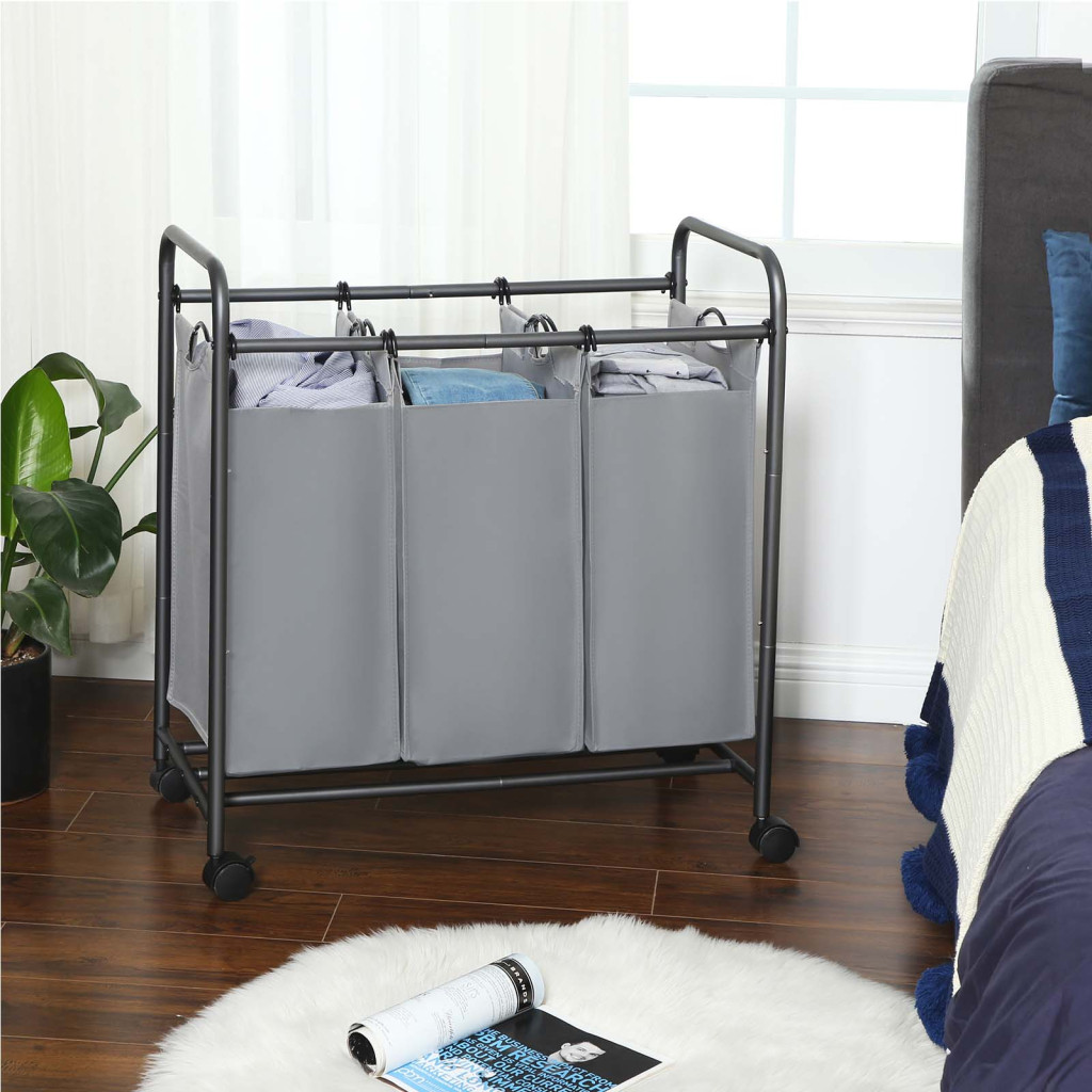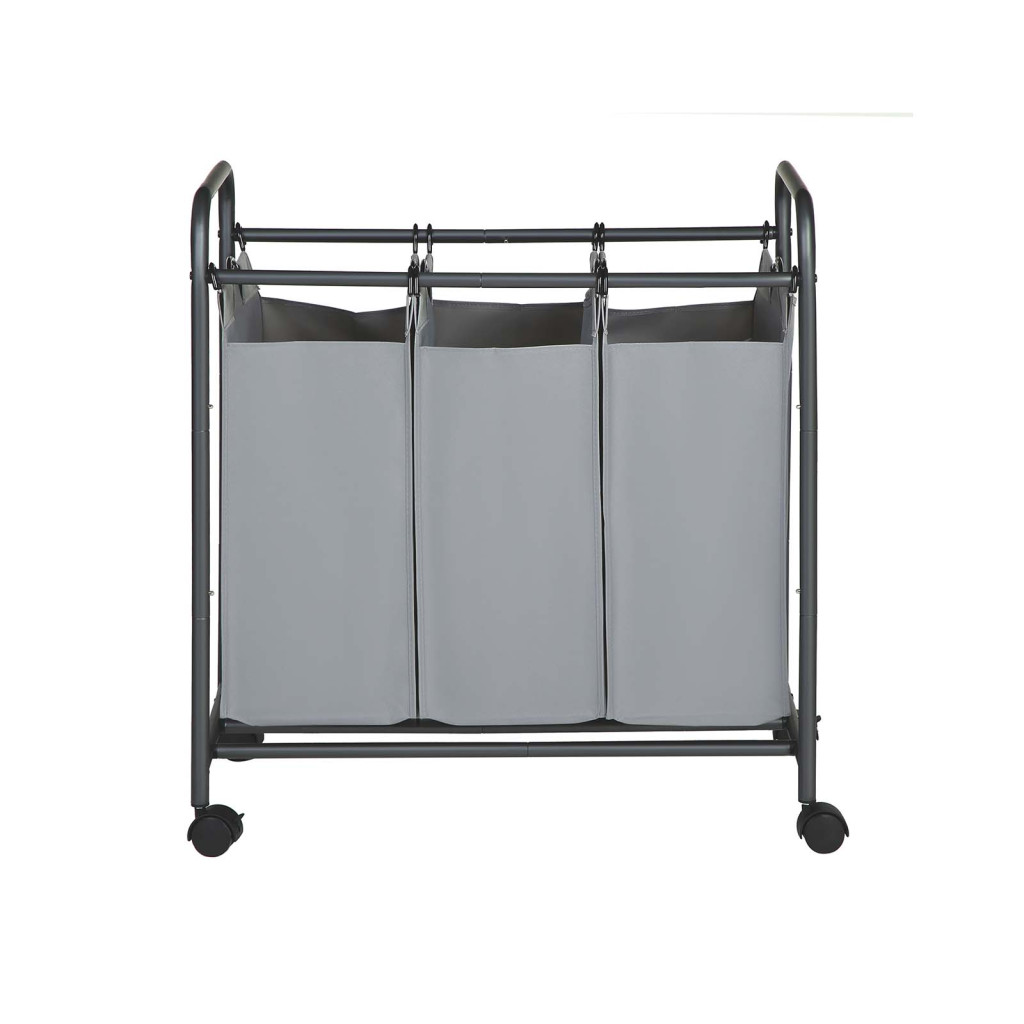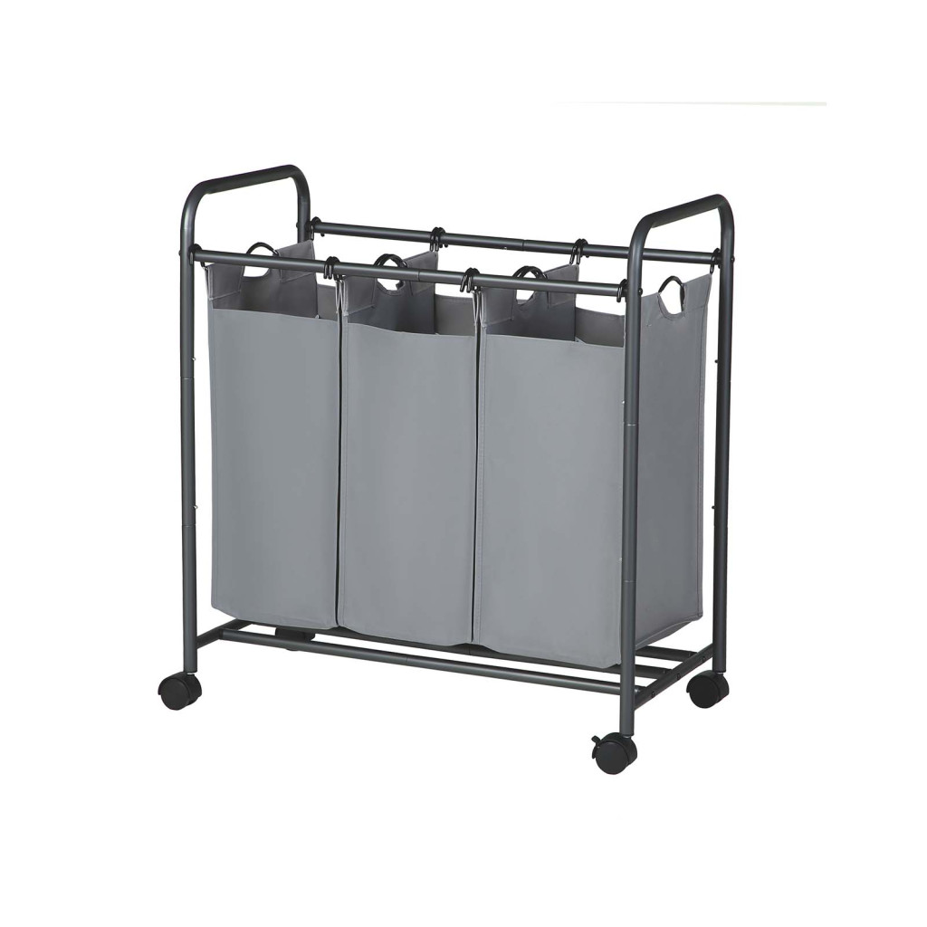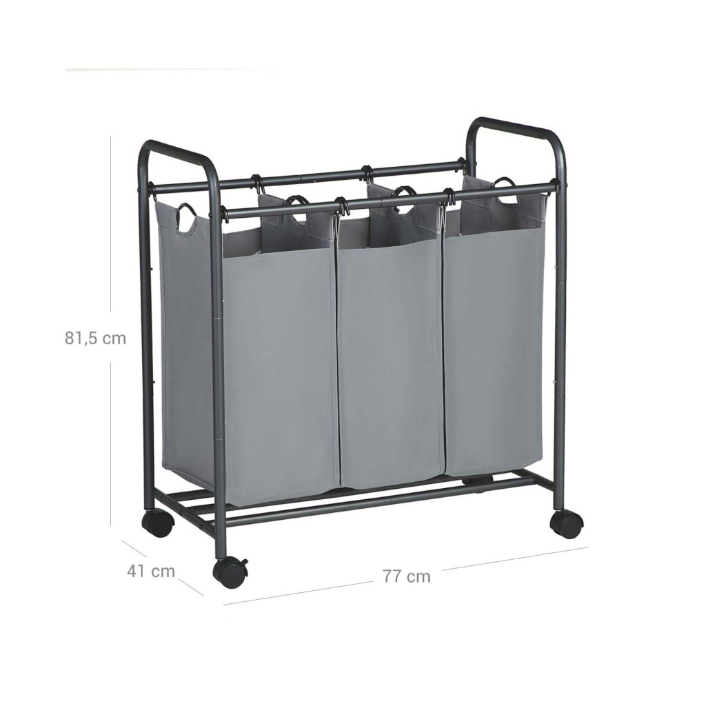 Ez a modern szennyestartó kocsi forradalmasítja a mosási rutint három különálló, egyenként 44 literes zsákjával. A strapabíró fémvázra szerelt, szürke poliészter zsákok lehetővé teszik a ruhák azonnali válogatását szín vagy anyag szerint, megelőzve a kellemetlen mosodai baleseteket.