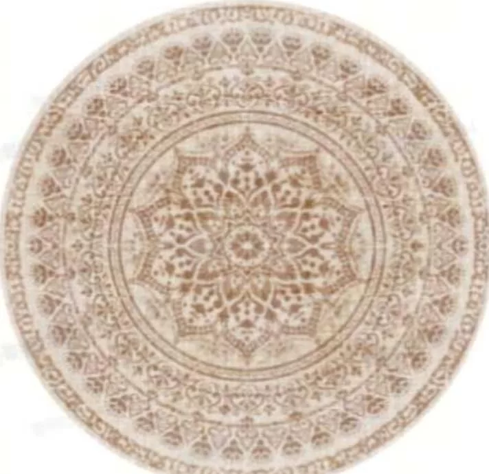 Elegáns, boho stílusú kerek szőnyeg harmonikus földszínekkel és szimmetrikus mintázattal, amely tökéletes kényelmet és stílusos dekorációt biztosít otthonának.