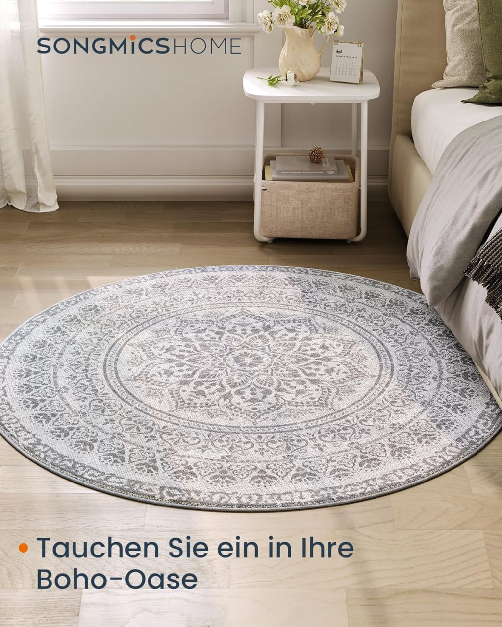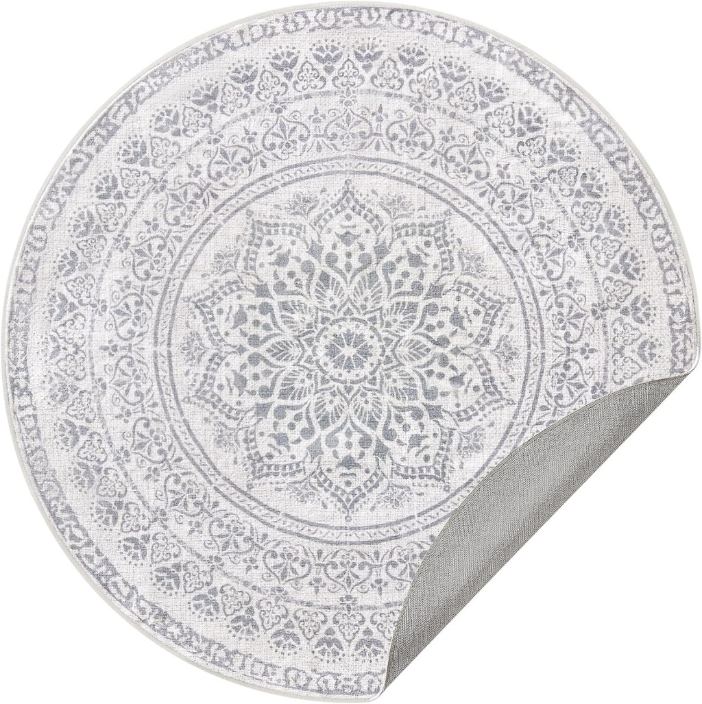 SONGMICS HOME Boho Kerek Szőnyeg Galambszürke Mandala Mintával