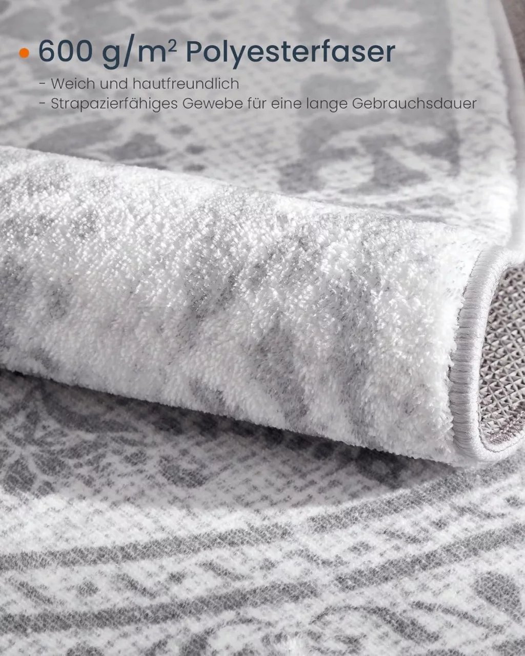 A galambszürke árnyalat és a kifinomult mandala minta harmonikusan illeszkedik bármilyen lakberendezési stílushoz, miközben a TPR csúszásgátló alap biztonságos használatot garantál minden padlótípuson.
