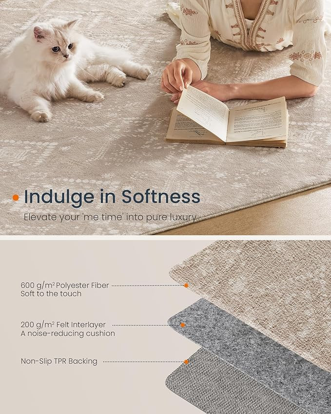 SONGMICS HOME Boho Stílusú Cappuccino Bézs Szőnyeg Csúszásmentes Alappal
