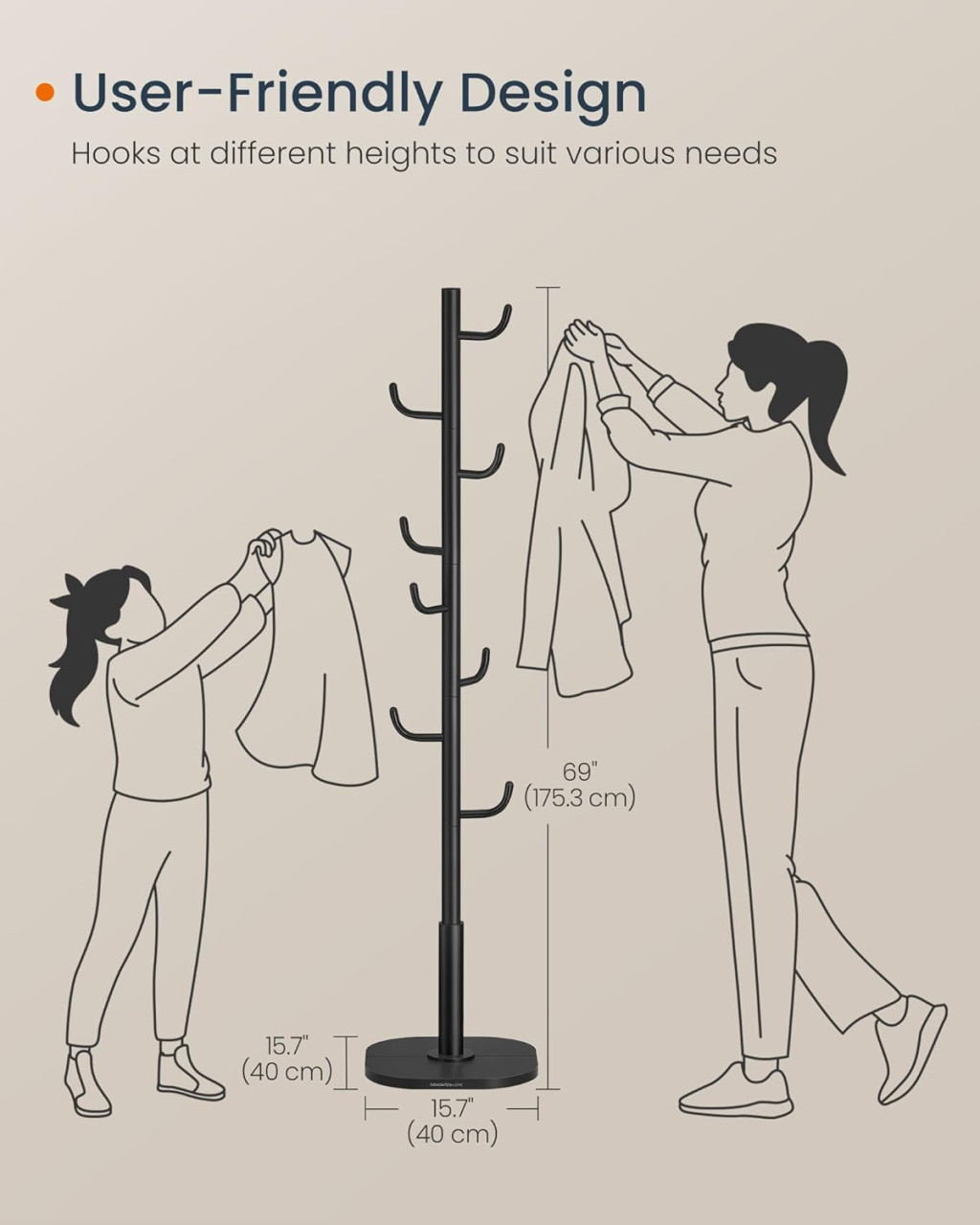 A stabil, 40x40 cm-es talp és a masszív acél szerkezet biztosítja, hogy a ruhafogas még teljes terhelés mellett is szilárdan álljon. A 175,3 cm-es magasság optimális helykihasználást tesz lehetővé, miközben a minimál design tökéletesen illeszkedik bármilyen enteriőrbe.