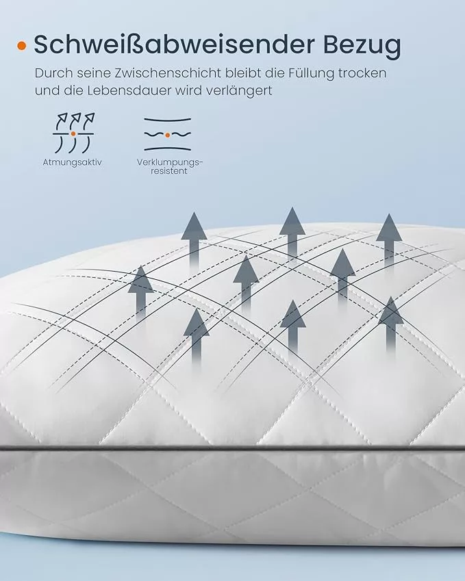 A 650 grammos prémium száltöltet és a stílusos rombusz varrás tökéletes kombinációja biztosítja a tartós minőséget és a maximális kényelmet. Az izzadásgátló rétegnek köszönhetően a párna hosszú élettartamú és könnyen tisztítható.