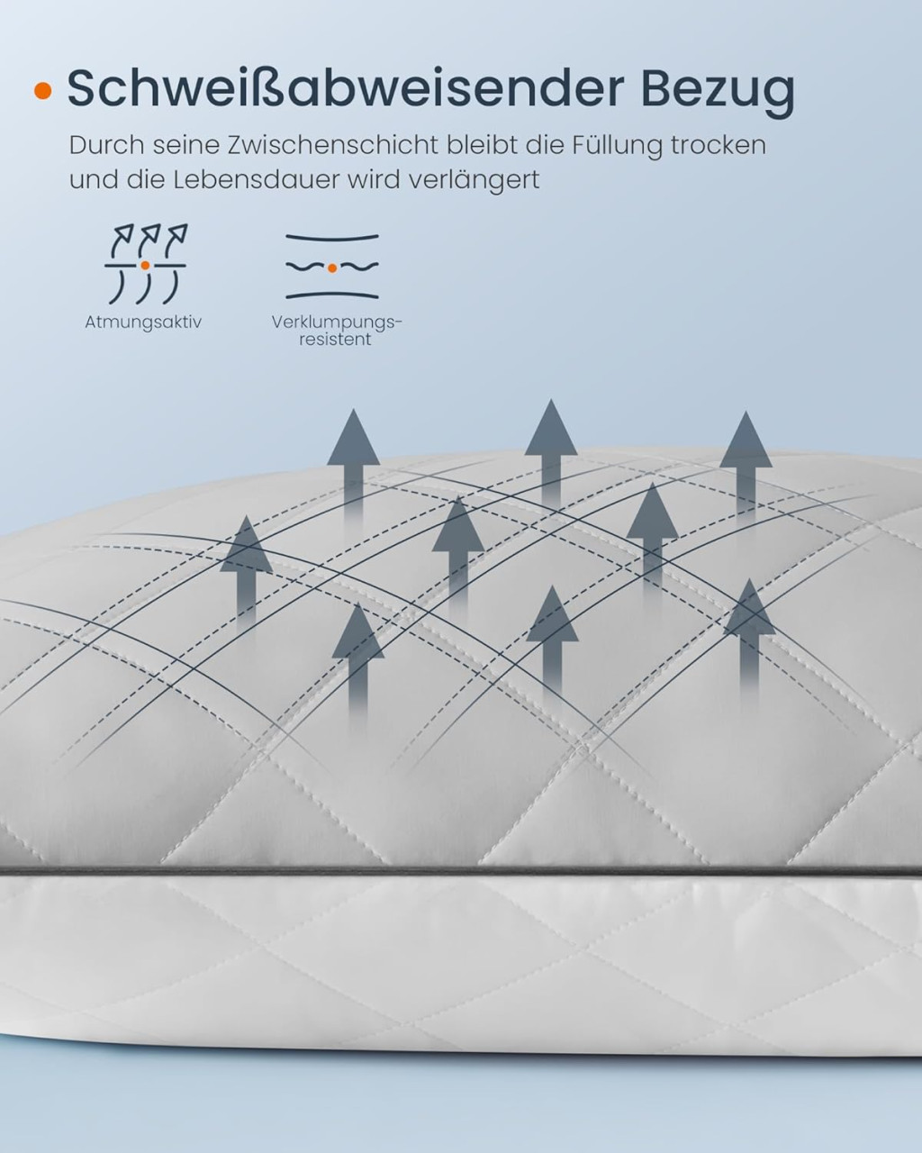 A SONGMICS HOME kétoldalas párna forradalmasítja az alvási élményt az egyedülálló két-az-egyben kialakításával. A nyári oldalon innovatív, hűsítő poliamid szövet gondoskodik a kellemes alvásról a meleg éjszakákon, míg a téli oldal puha, meleg poliészter borítása véd a hideg ellen.