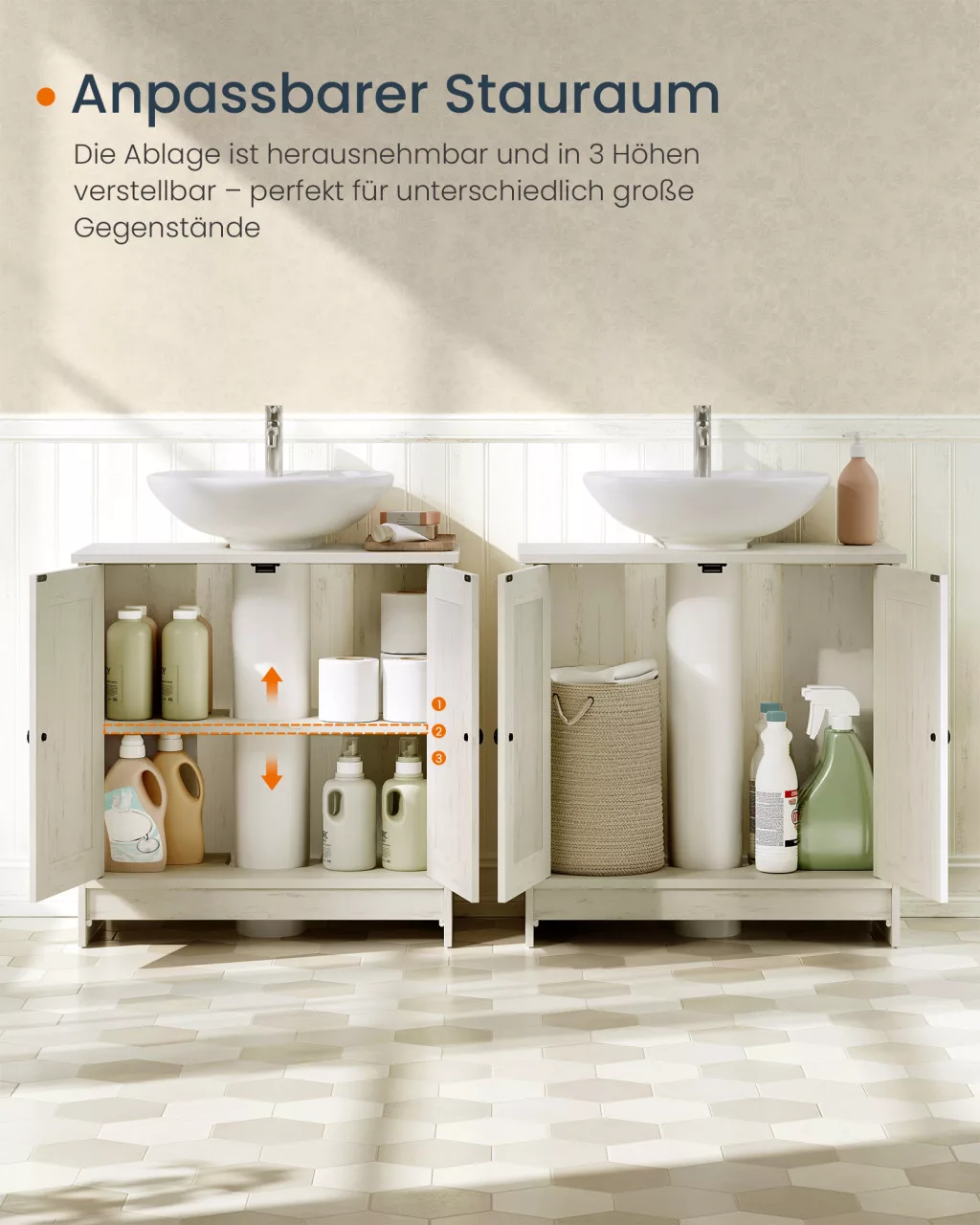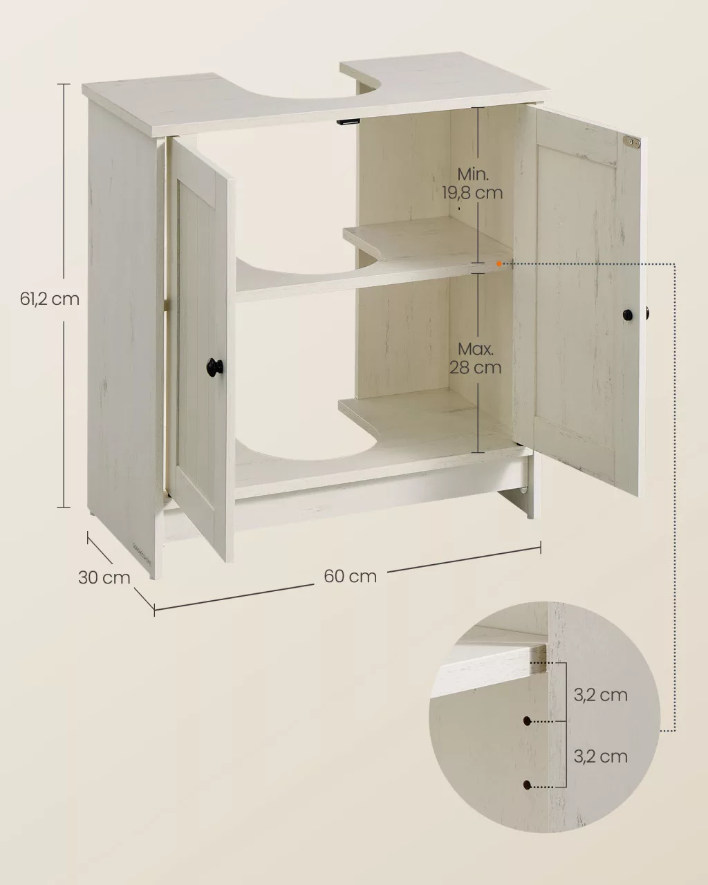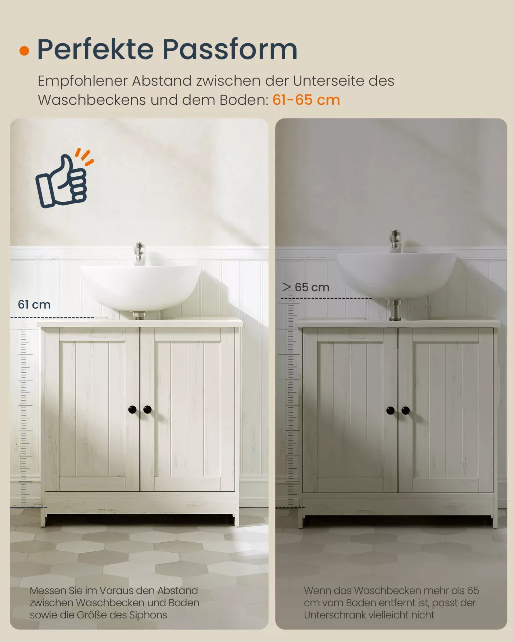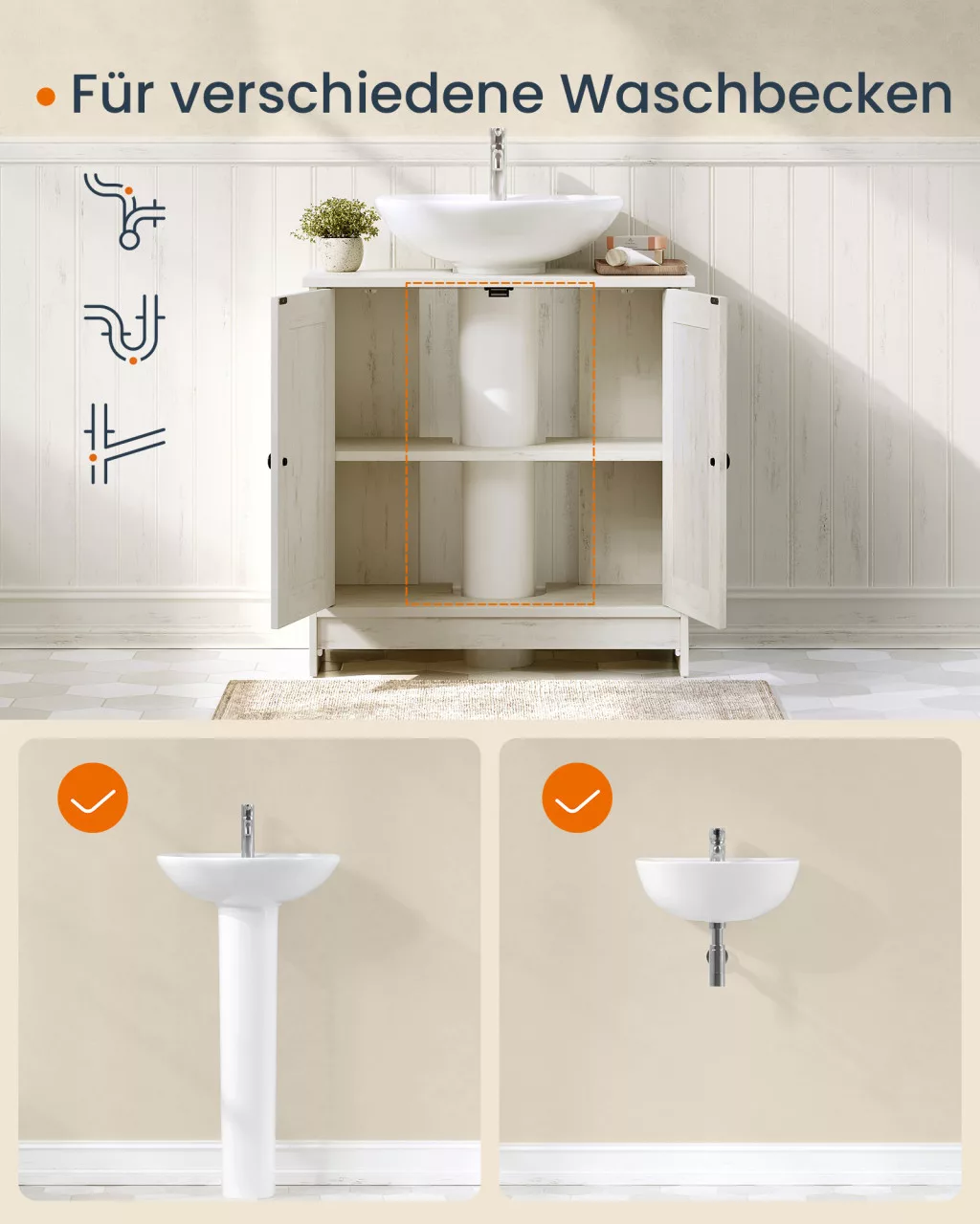 SONGMICS HOME Mosdó Alatti Szekrény Szerszám Nélküli Összeszerelés Rusztikus Fehér