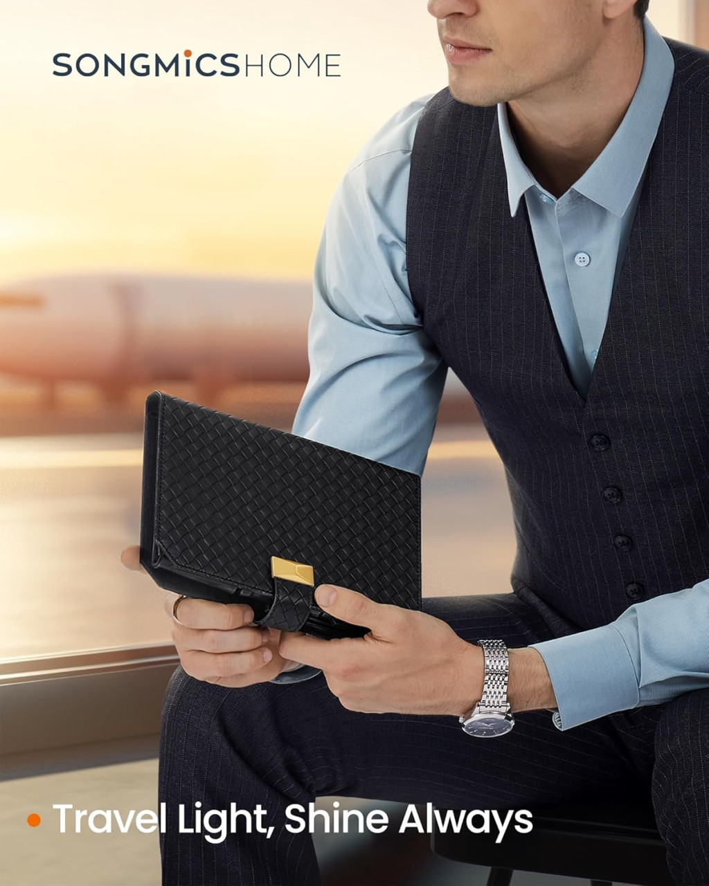 A SONGMICS HOME RONNE kollekció óratartó tokja egyesíti a időtlen eleganciát a modern funkcionalitással. A fonott mintázatú PU bőr külső és az arany színű díszítőelemek prémium megjelenést kölcsönöznek, míg a műszarvasbőr belső bélés maximális védelmet nyújt értékes óráinak.