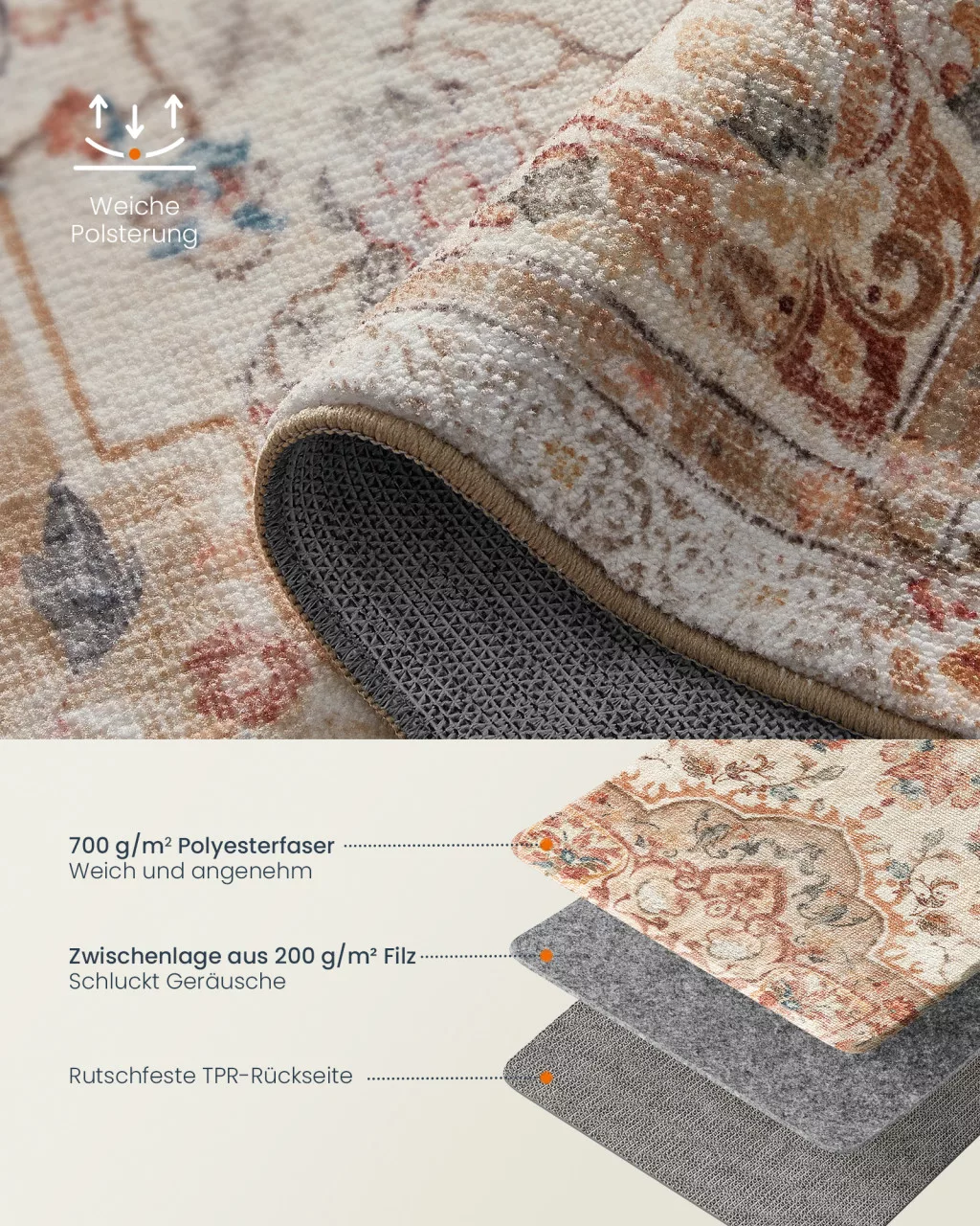 SONGMICS HOME Vintage Stílusú Cappuccino Bézs Szőnyeg Csúszásmentes Felülettel
