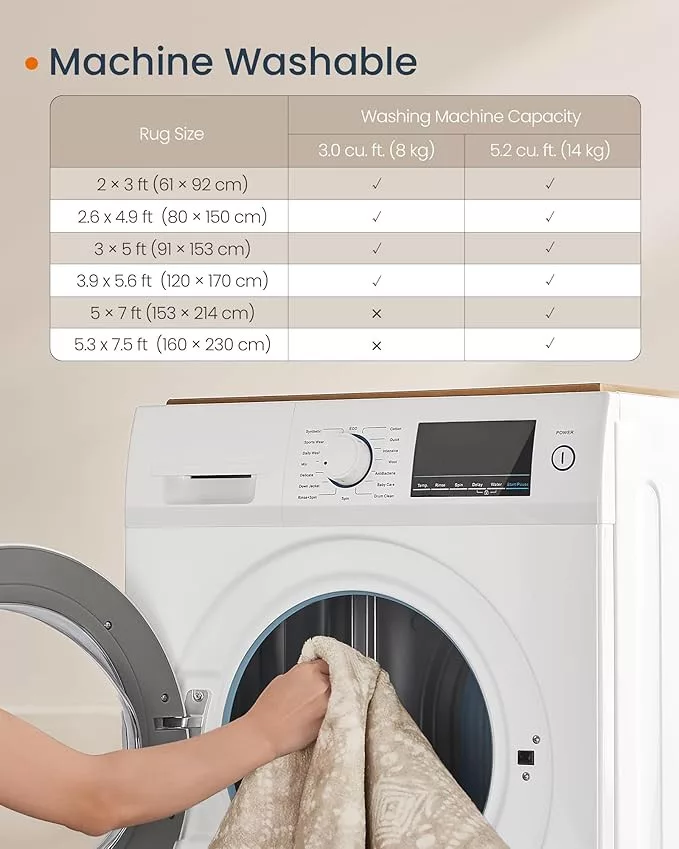 A TPR (termoplasztikus gumi) hátlap kiváló csúszásmentességet biztosít különböző padlótípusokon, beleértve a parkettát és a csempét is. A prémium anyagokból készült szőnyeg géppel mosható, és még több mosás után is megőrzi puhaságát. Összehajtható kialakítása megkönnyíti a tárolást és szállítást, így könnyedén frissítheted otthonod hangulatát.