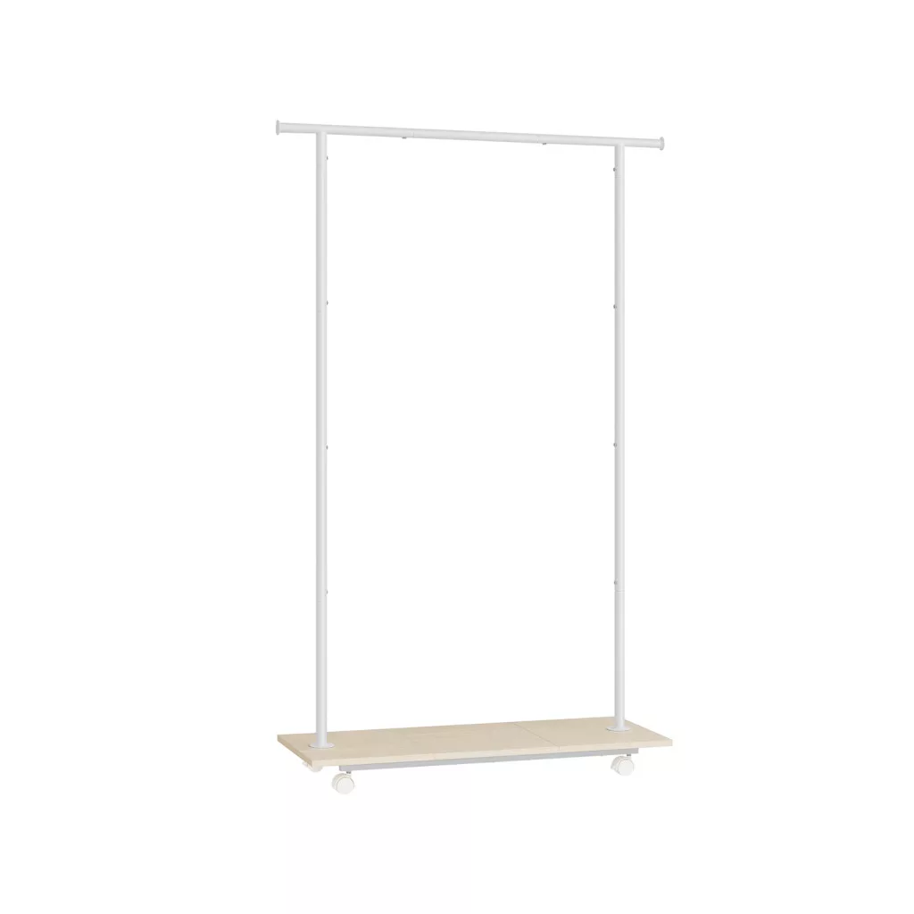 Elegáns és praktikus gurulós ruhaállvány 98,5 cm-es akasztórúddal és alsó polccal, amely tökéletes megoldást nyújt ruhái tárolására és bemutatására.