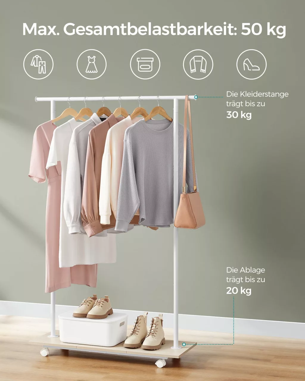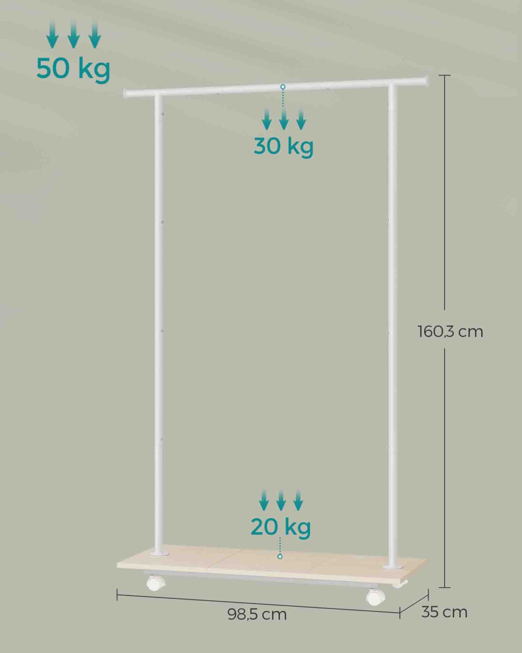Stílusos és mobil ruhatárolási megoldás 50 kg teherbírással