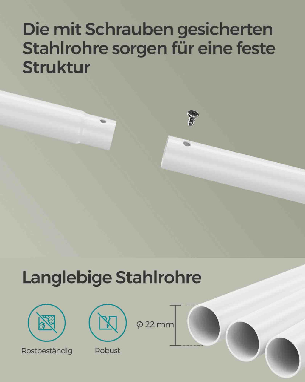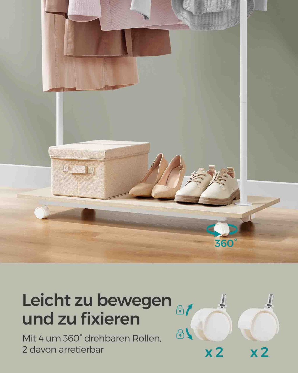 SONGMICS HSR151W01 Gurulós Ruhaállvány Polccal Natúr Bézs-Fehér Acél Vázas