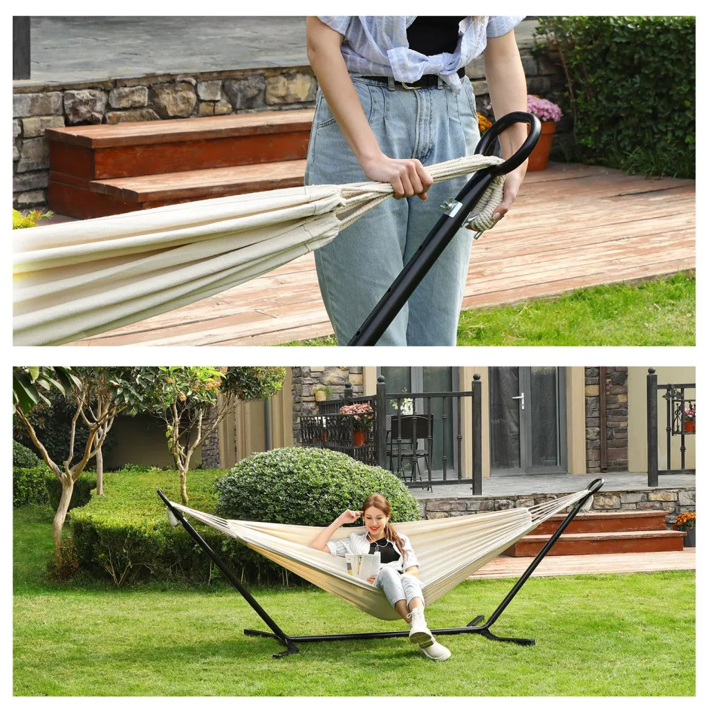 SONGMICS Hordozható Függőágy Állvánnyal Bézs-Fekete 210 cm